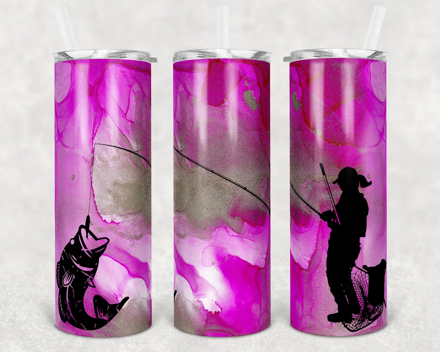 20 oz Skinny Tumbler Bass Fishing pink fisher woman Sublimation Design Print Transfer