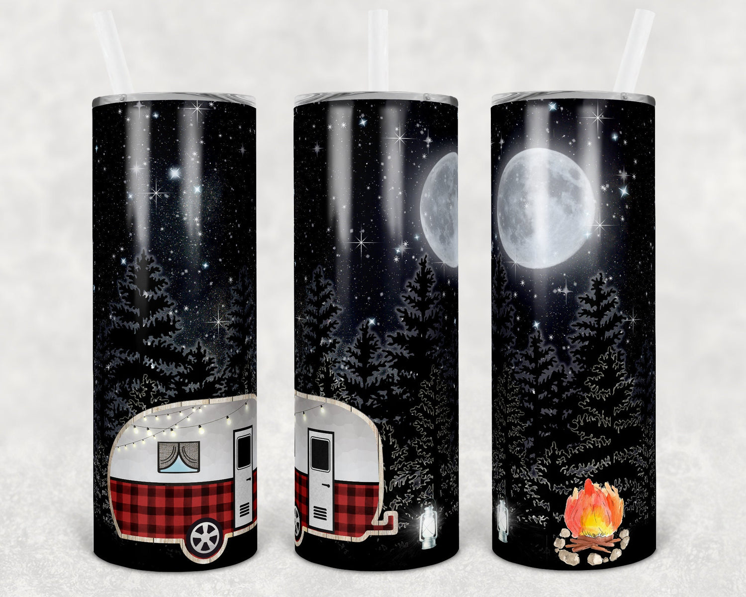 20 oz Skinny Tumbler Camper Vintage Red Plaid Trailer Night Sky Camping Sublimation Design Dwnld