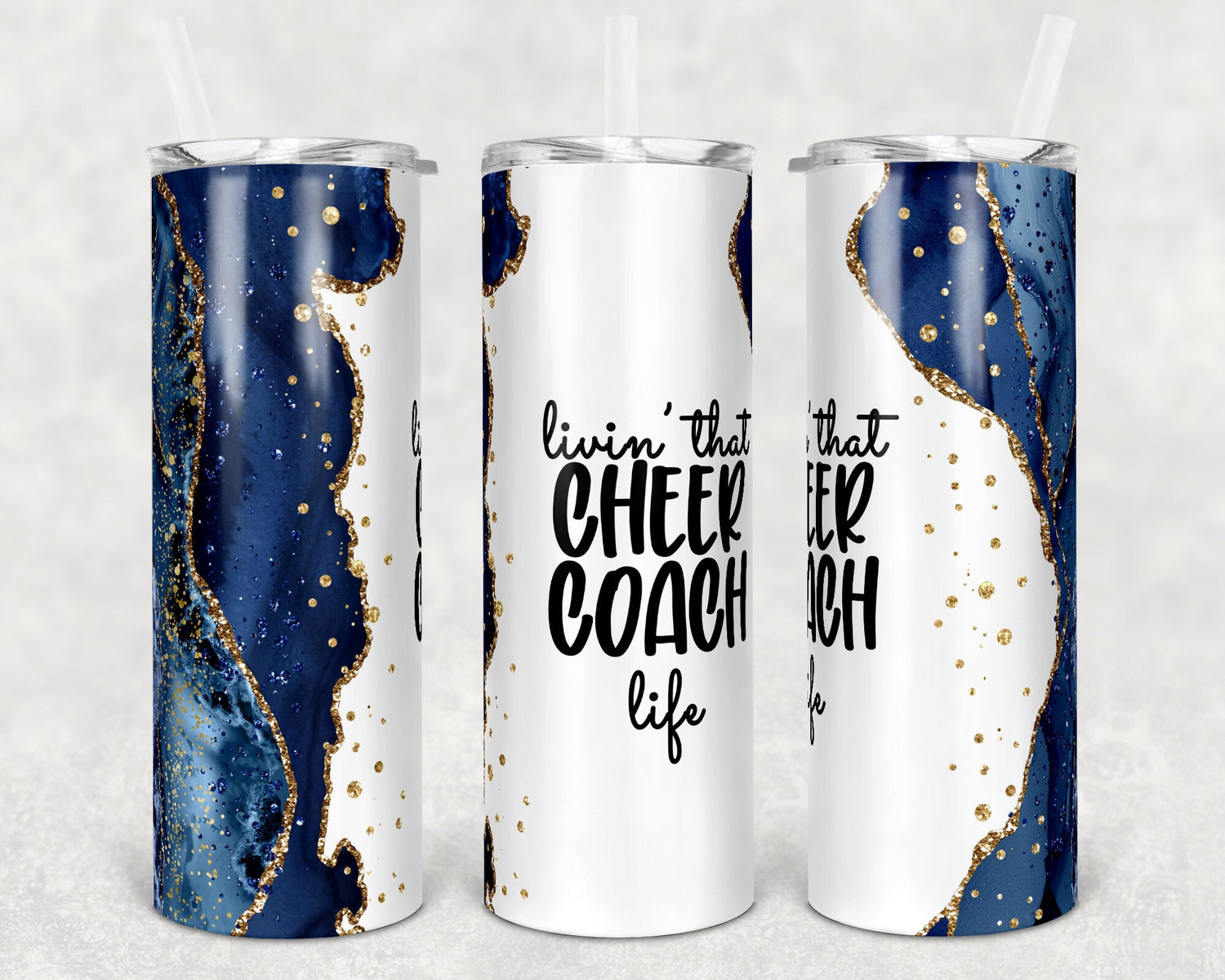 20 oz Skinny Tumbler Cheer Coach Glitter Agate Navy Gold Sublimation Design Print Transfer