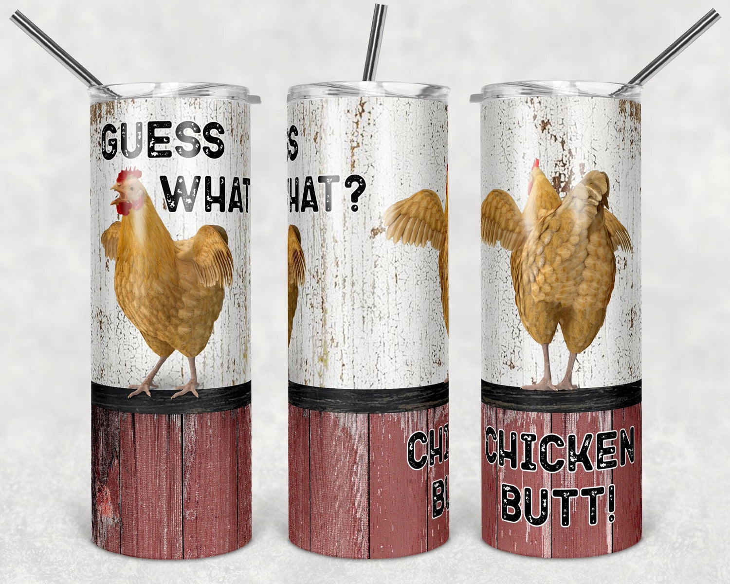 20 oz Skinny Tumbler Chicken Farm Funny Guess What Chicken Butt Sublimation Design