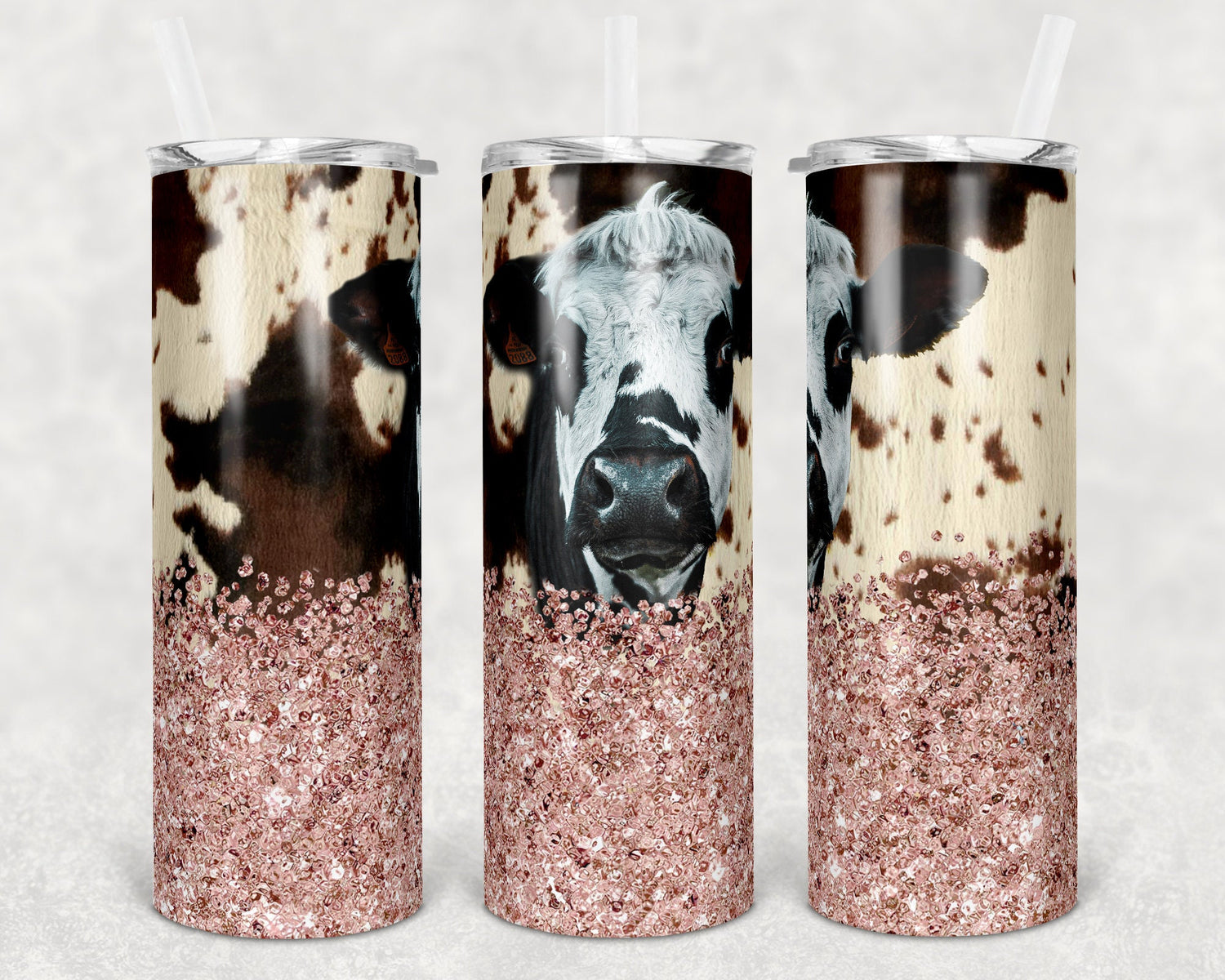 20 oz Skinny Tumbler Design Cow Hide Cow Rose Gold Sublimation Design Print Transfer