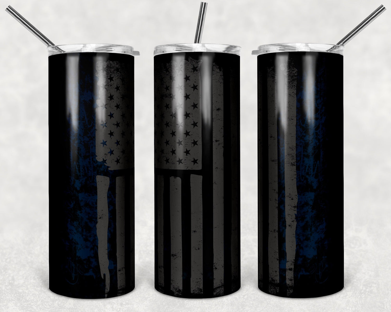 20 oz Skinny Tumbler Distressed Flag Gray Sublimation Design Print Transfer