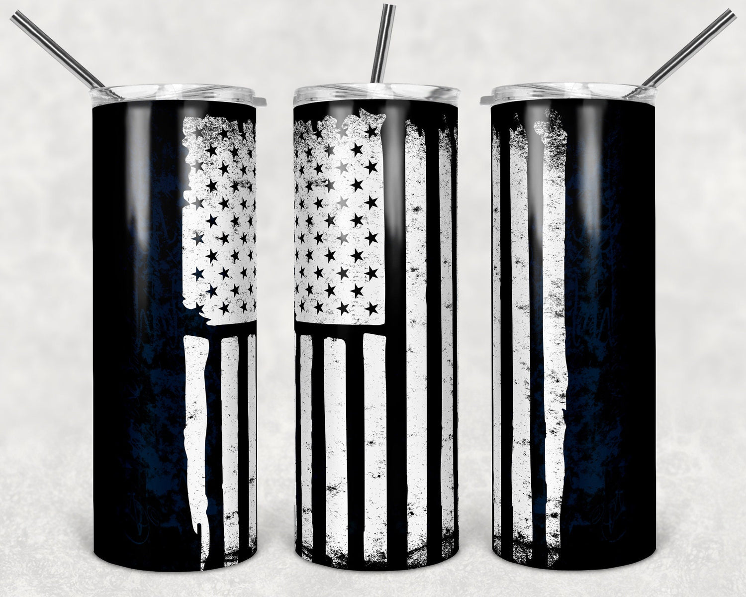 20 oz Skinny Tumbler Distressed Flag White Sublimation Design Print Transfer