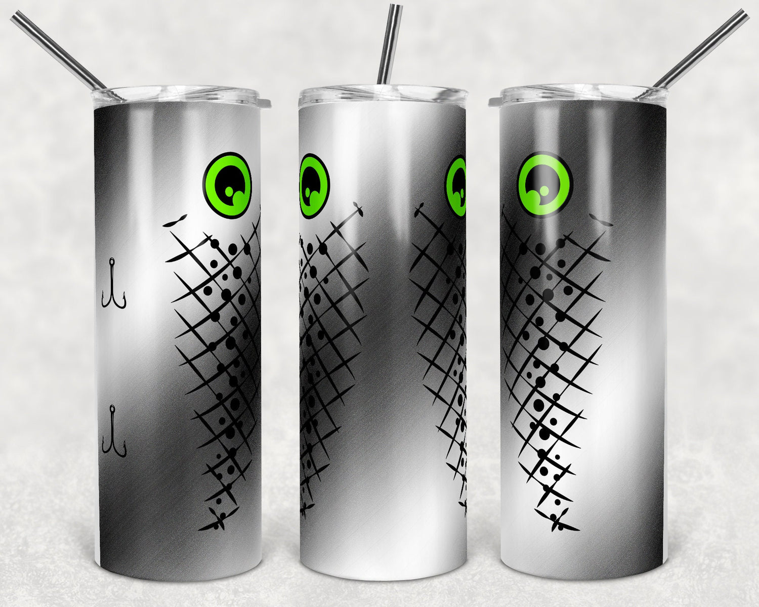 20 oz Skinny Tumbler Fishing Lure Silver Scales Sublimation Design Print Transfer