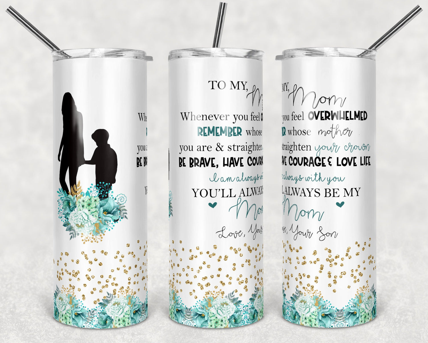 20 oz Skinny Tumbler Floral To My Mom from son Sublimation Design Print Transfer