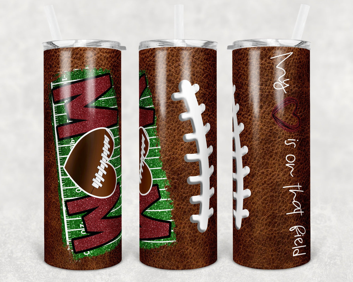 20 oz Skinny Tumbler Football Mom Heart on Field Leather Sublimation Design Template Design
