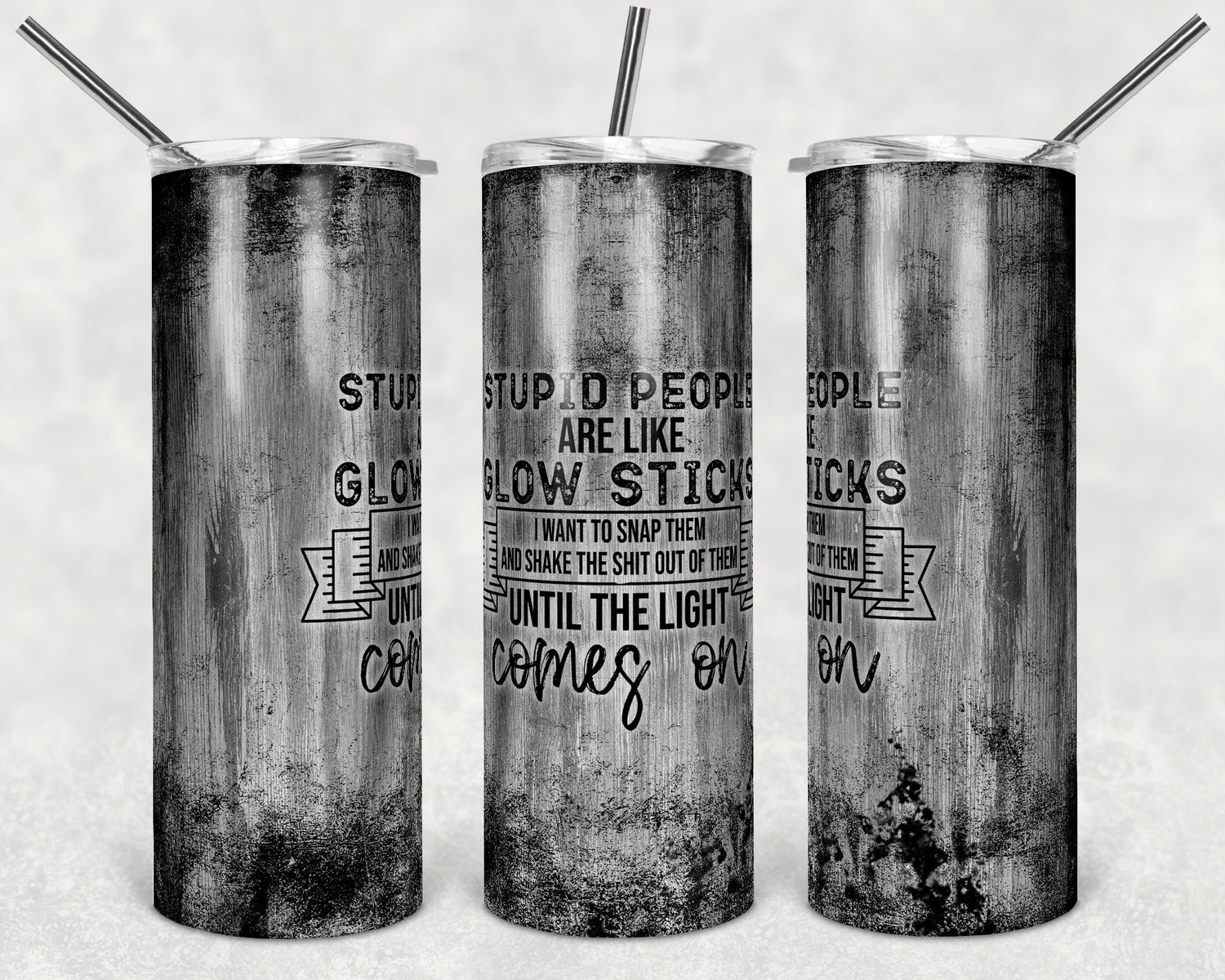 20 oz Skinny Tumbler Funny Stupid People Quote Wood and Grunge Sublimation Design