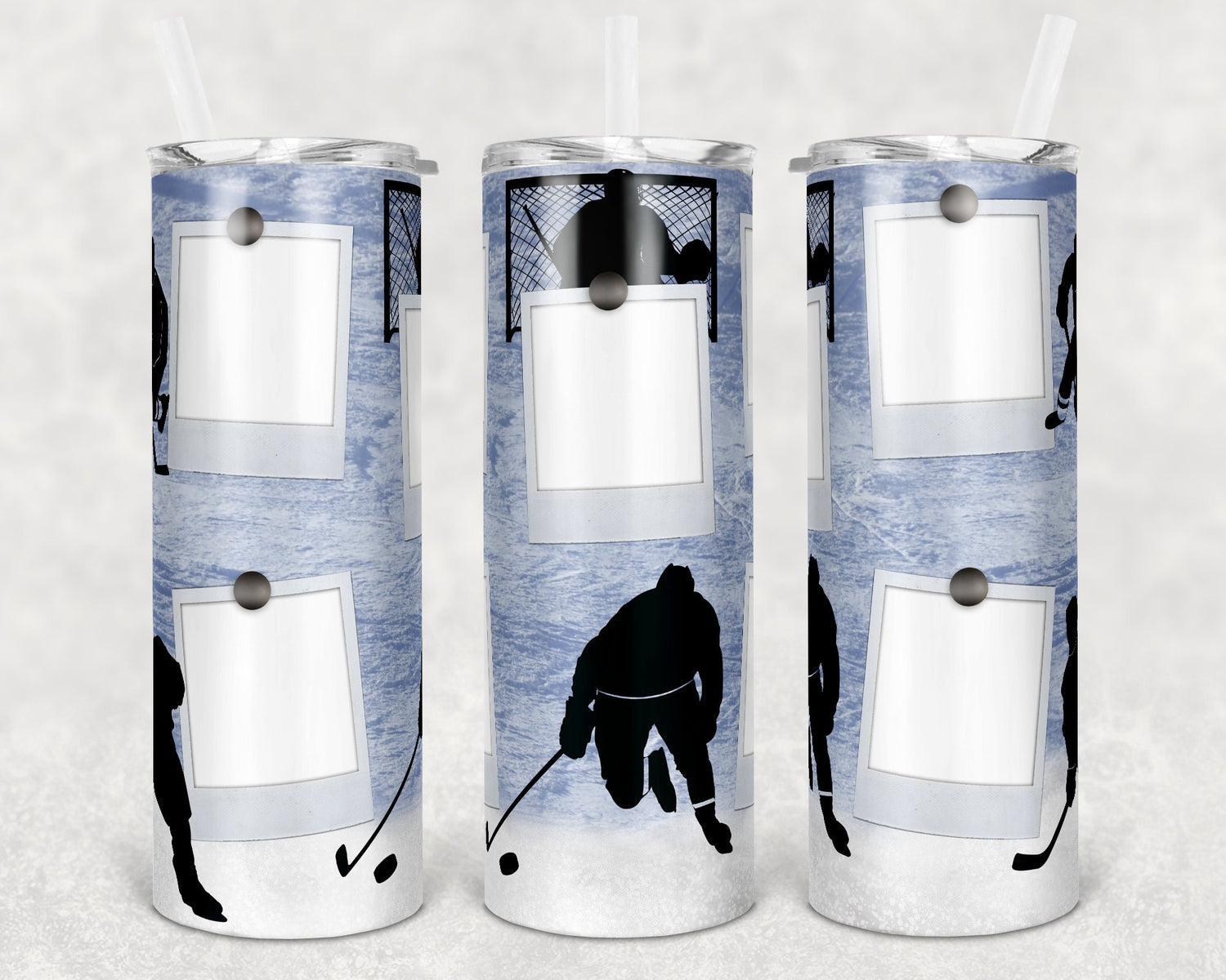 20 oz Skinny Tumbler Hockey Picture Polaroid Sublimation Design Print Transfer