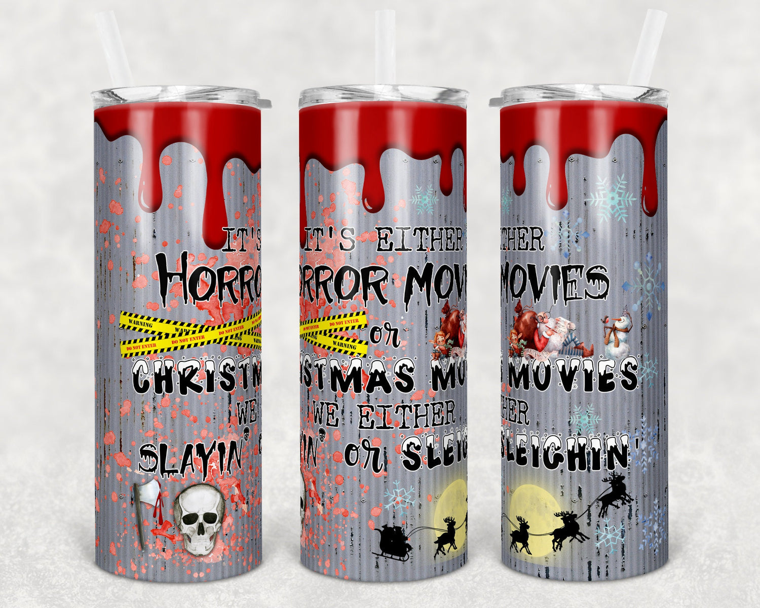 20 oz Skinny Tumbler Horror Movies and Christmas Movies Sublimation Design Shirt and Tumbler