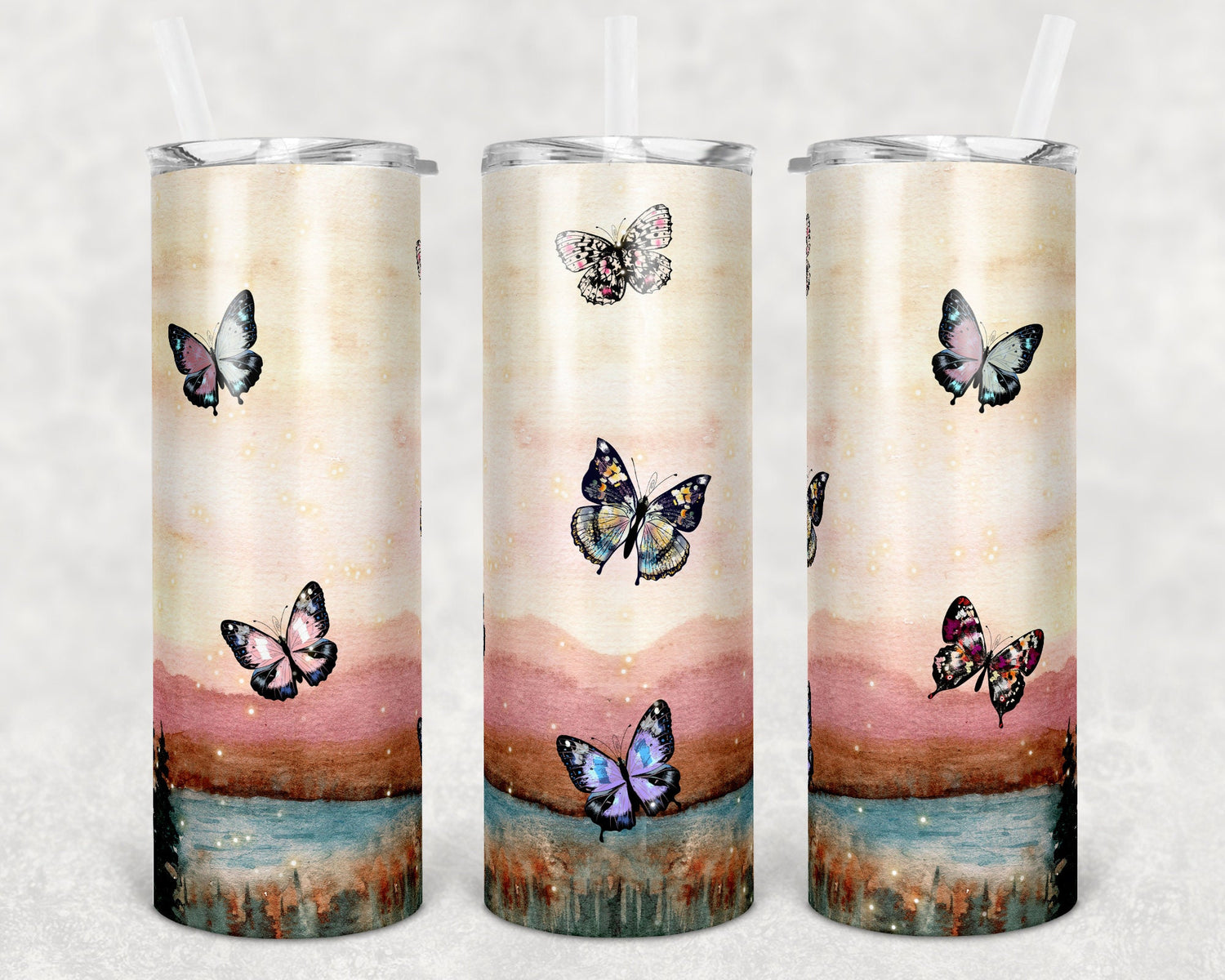 20 oz Skinny Tumbler Lake Nighttime Butterflies Sublimation Design Print Transfer butterfly
