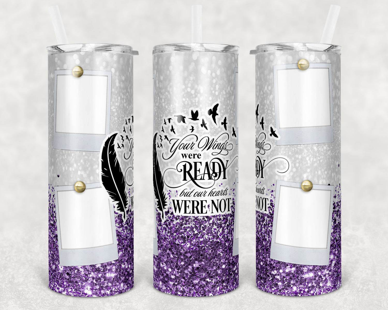 20 oz Skinny Tumbler Memorial with Pictures Purple Glitter Wings Were Ready Sublimation Design