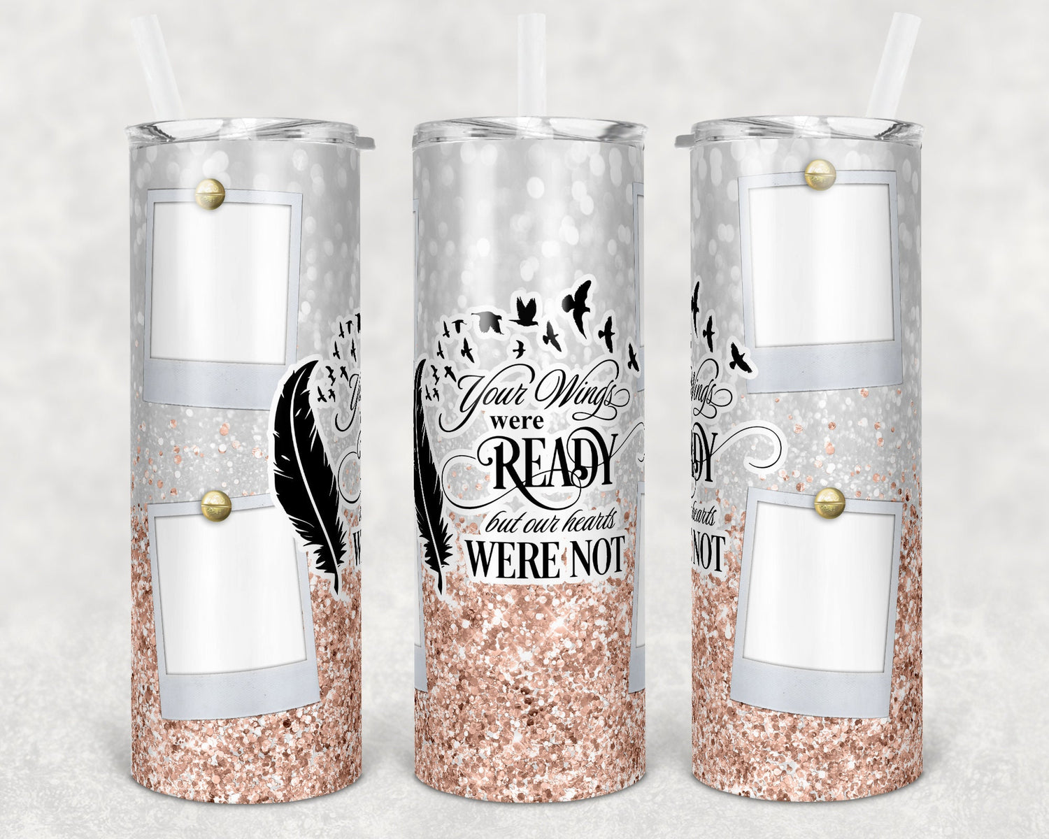 20 oz Skinny Tumbler Memorial with Pictures Rose Gold Glitter Wings Were Ready Sublimation Design