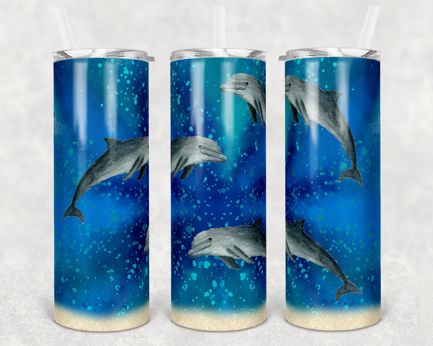 20 oz Skinny Tumbler Ocean Under the Sea Dolphin Tumbler Great White Sublimation Design