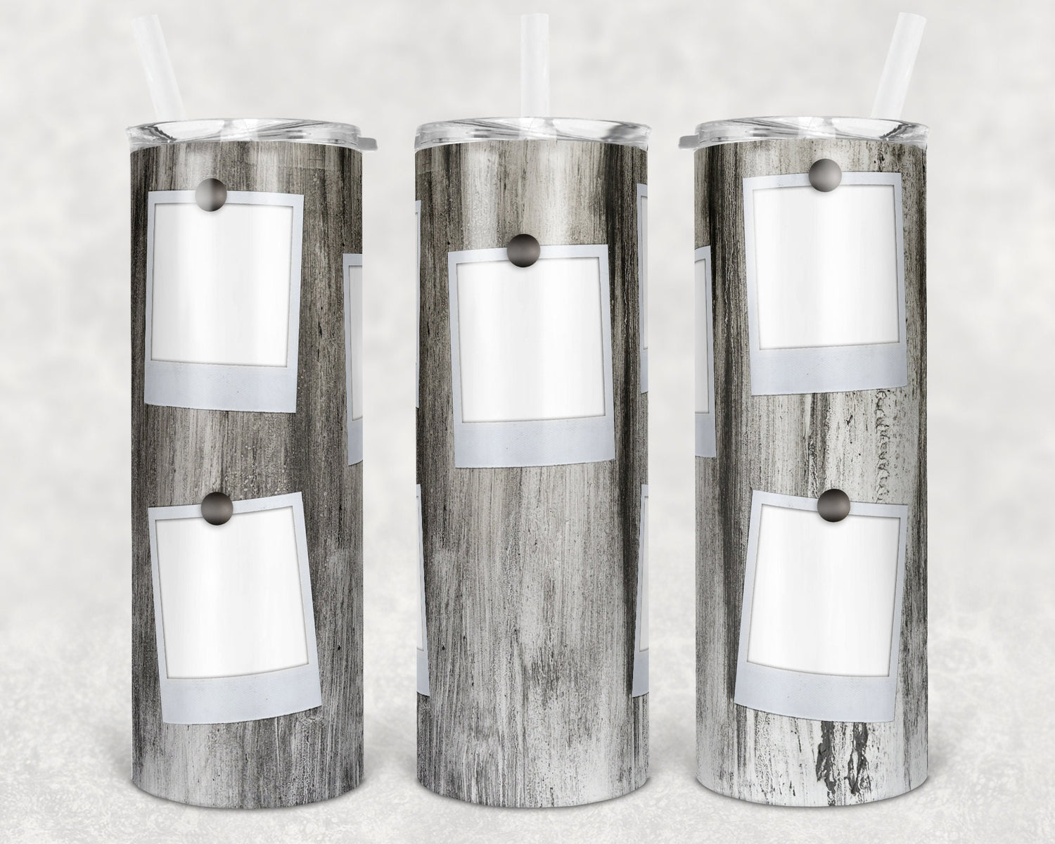 20 oz Skinny Tumbler Picture Frame Faux Wood 5 Picture Sublimation Design