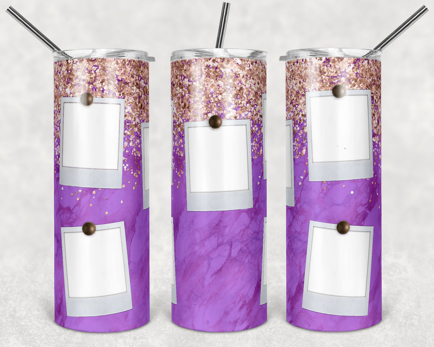20 oz Skinny Tumbler Picture Frame Marble Glitter Sublimation Design