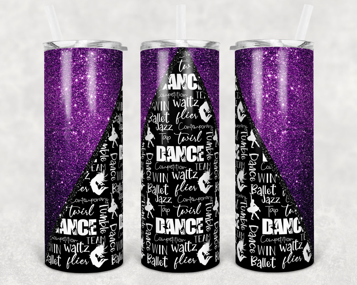 20 oz Skinny Tumbler purple Glitter Dance Dancing Sublimation Design Personalize