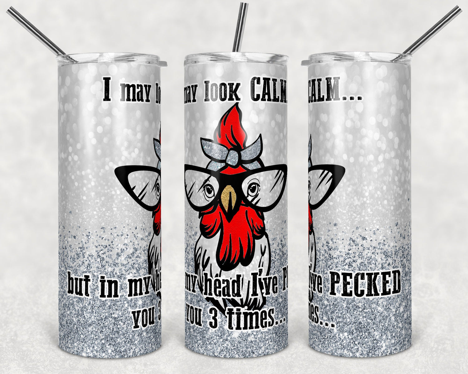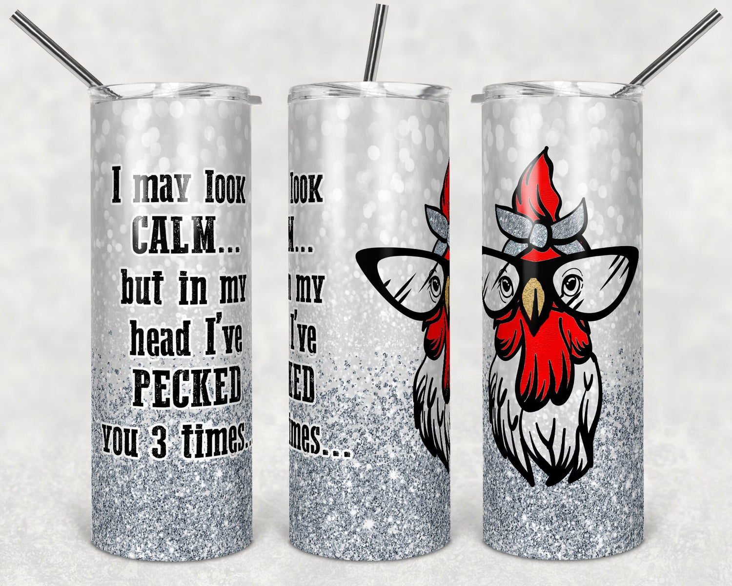 20 oz Skinny Tumbler Snarky Chicken Funny I may Look Calm but pecked you 3 times Sublimation Design