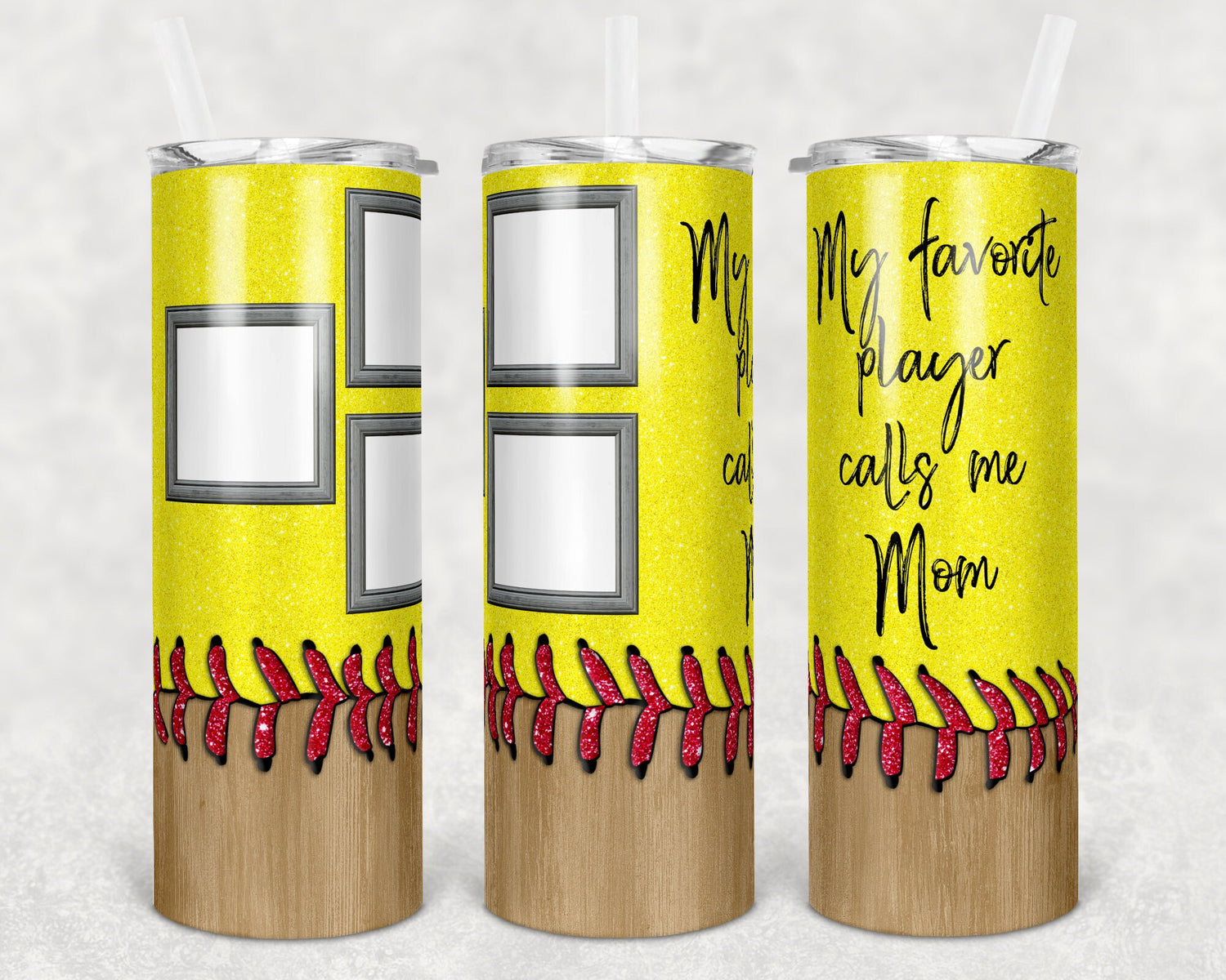 20 oz Skinny Tumbler Softball Sublimation Design 3 pic Favorite Player calls me Mom Template Design