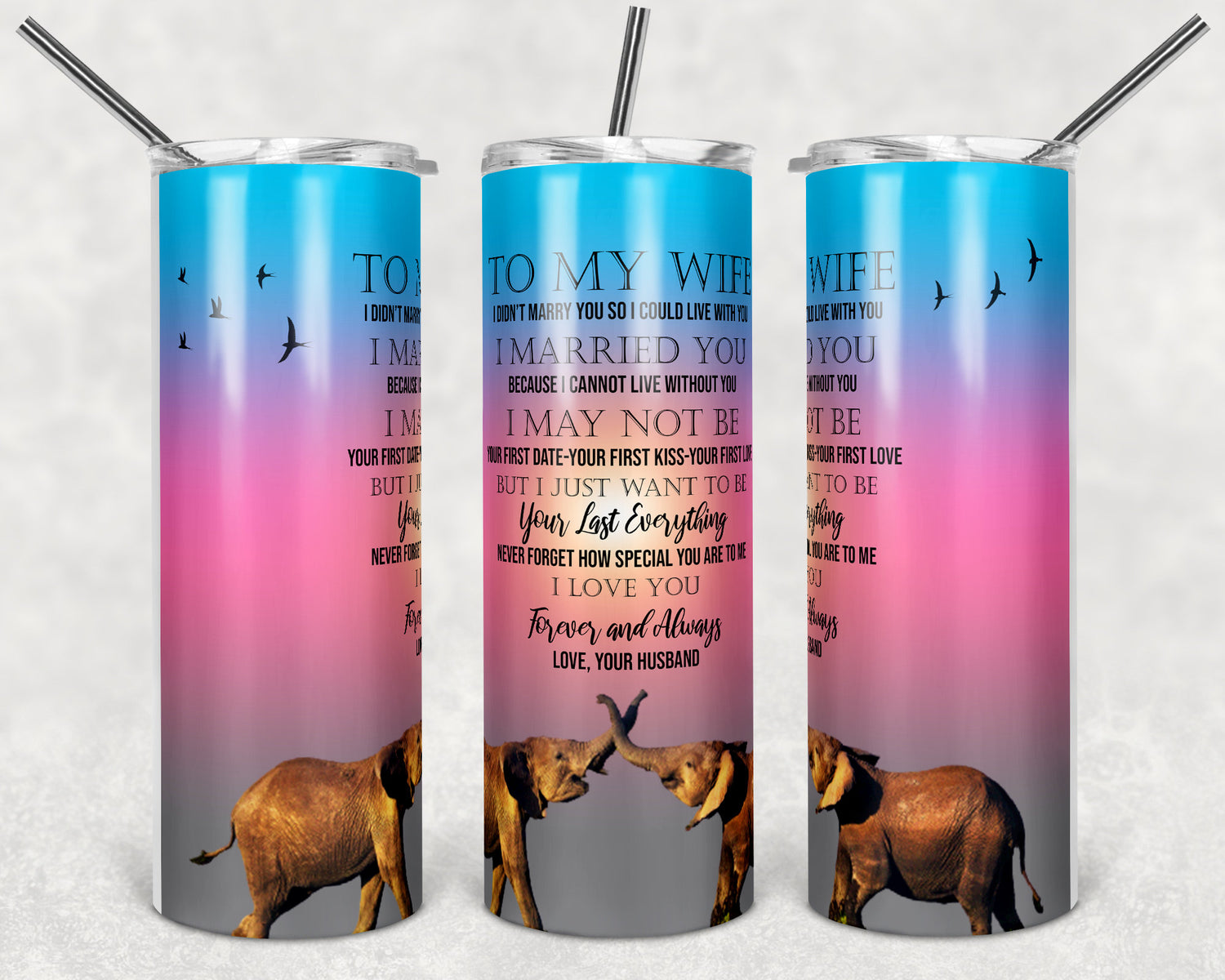 20 oz Skinny Tumbler Sublimation African Elephant Sunset To My Wife Quote Couple Gift Design Straight Design