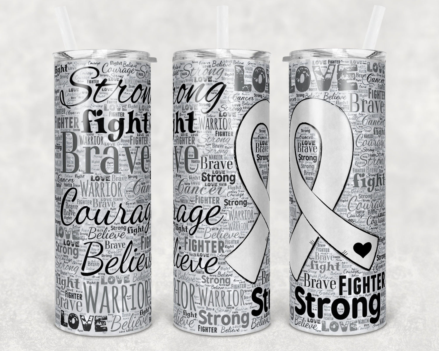 20 oz Skinny Tumbler Sublimation Awareness Ribbon Word Art Lung Cancer White Straight Warped Design tumblers