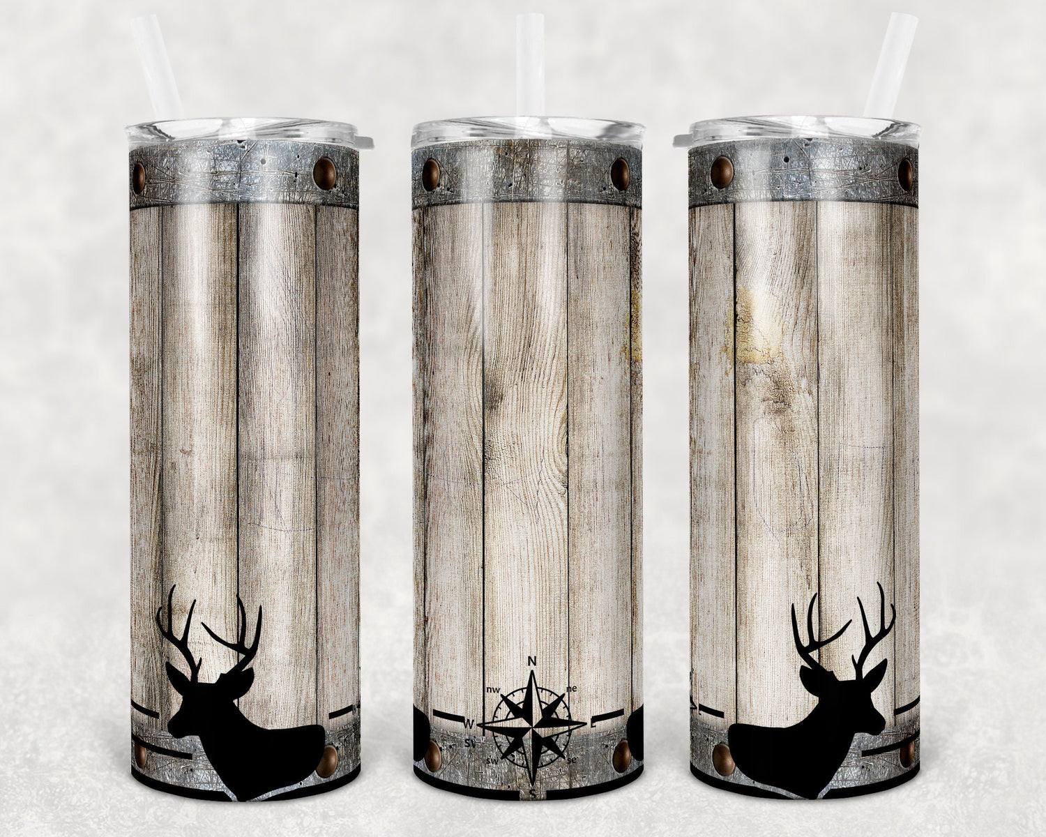 20 oz Skinny Tumbler Sublimation Deer Wood Barrel Design Template Straight Warped