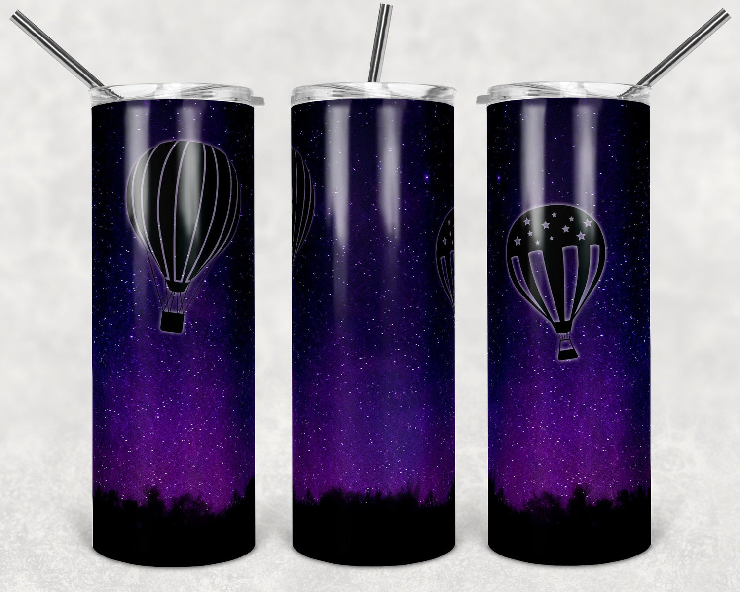 20 oz Skinny Tumbler Sublimation Design Galaxy Night Sky Hot Air Balloon Silhouette tumblers