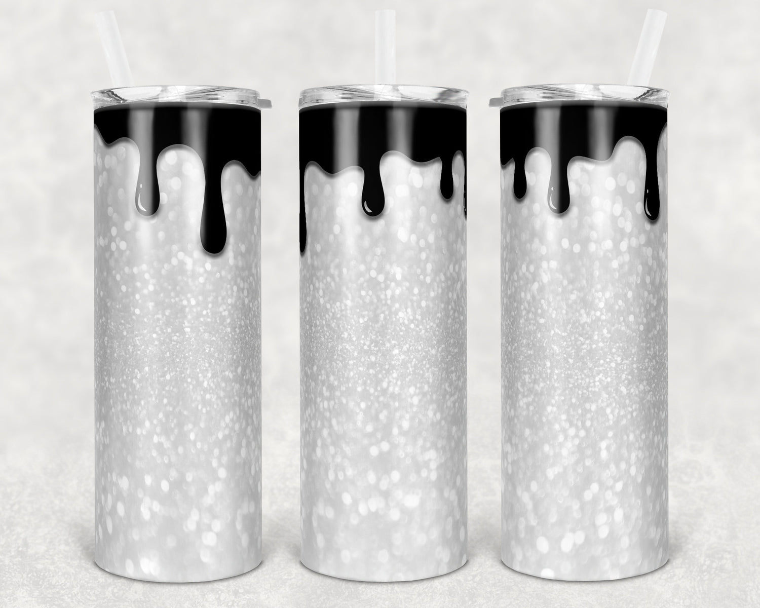 20 oz Skinny Tumbler Sublimation Design Glitter Black Drip Background Straight and Warped Design
