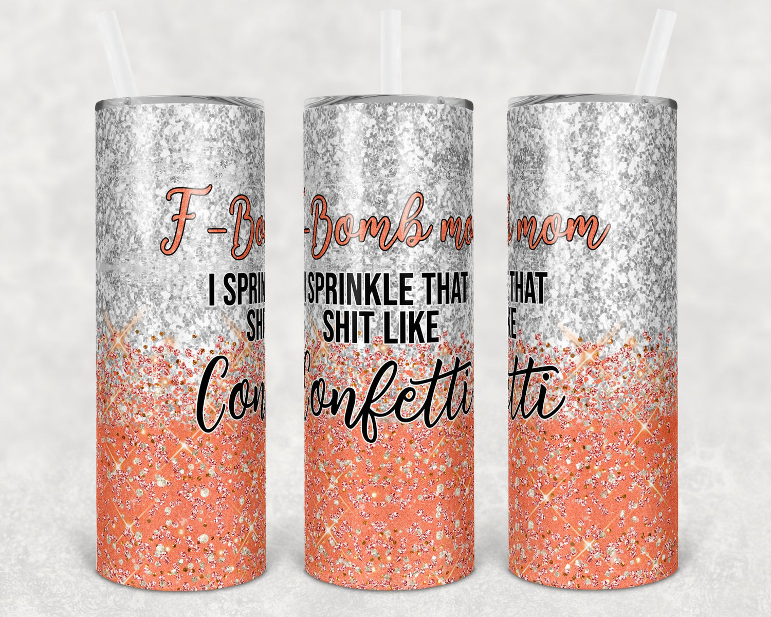20 oz Skinny Tumbler Sublimation Design Glitter F bomb Mom Coral Straight and Warped Design
