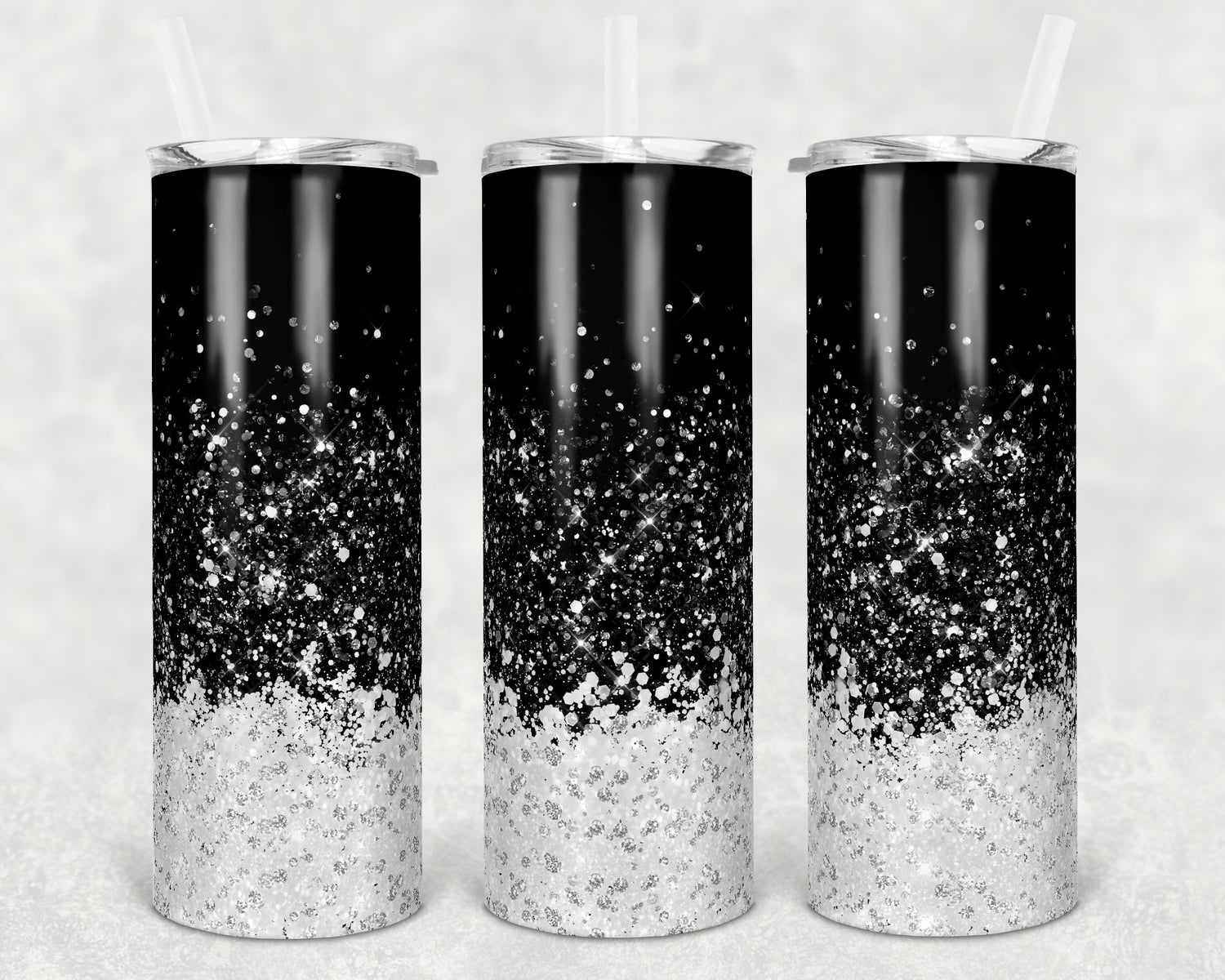 20 oz Skinny Tumbler Sublimation Design Template Black to white Glitter ombre Design Inst tumblers
