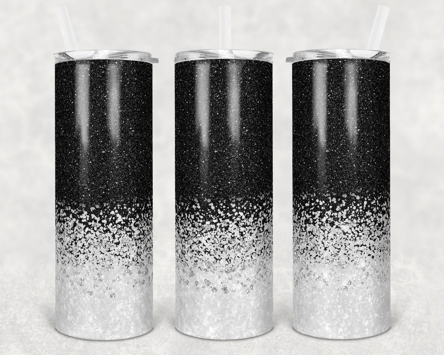 20 oz Skinny Tumbler Sublimation Design Template Black to white Glitter ombre Design Inst tumblers
