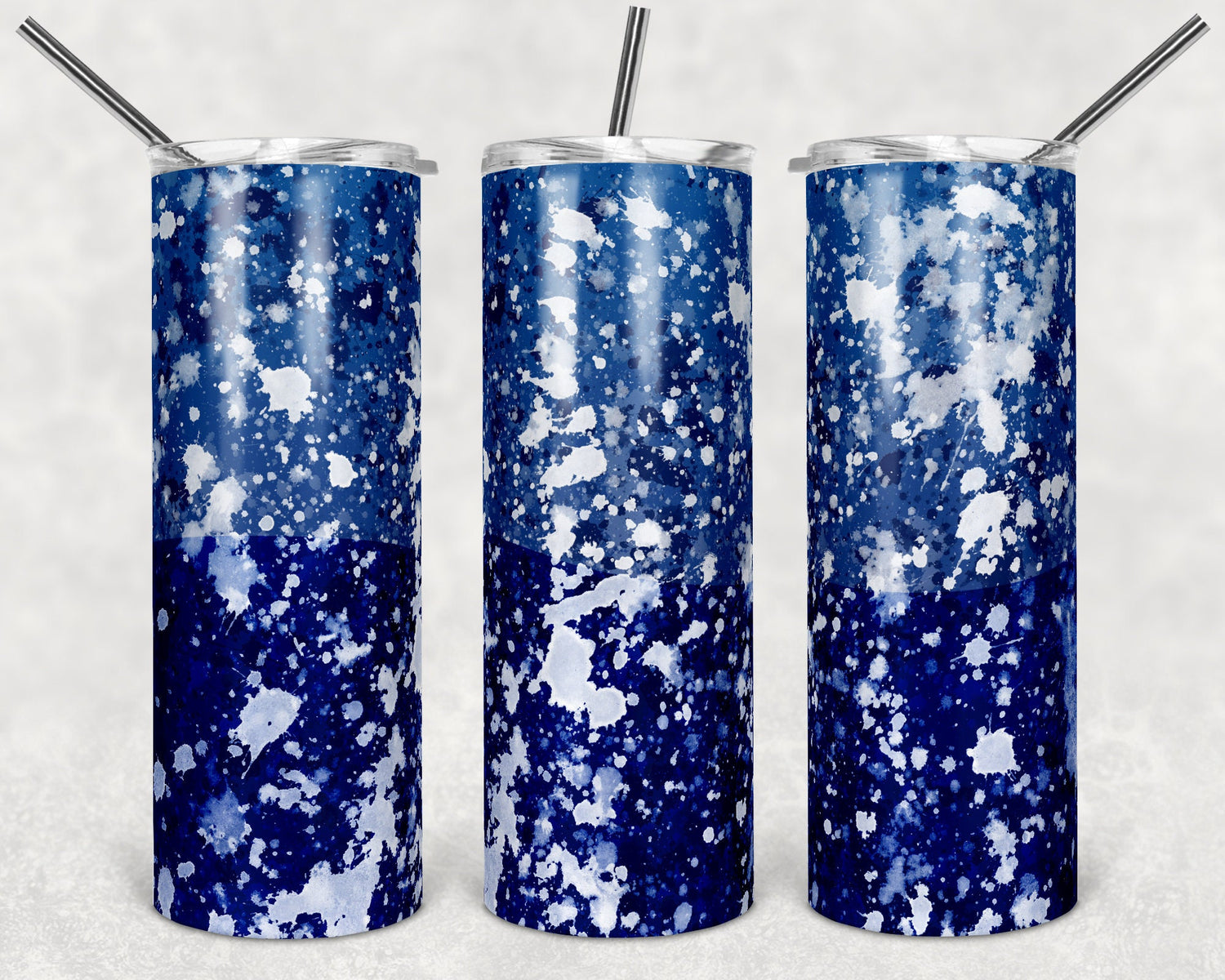 20 oz Skinny Tumbler Sublimation Design Template Blue White Power Wash Add School Logo Straight Warped Design