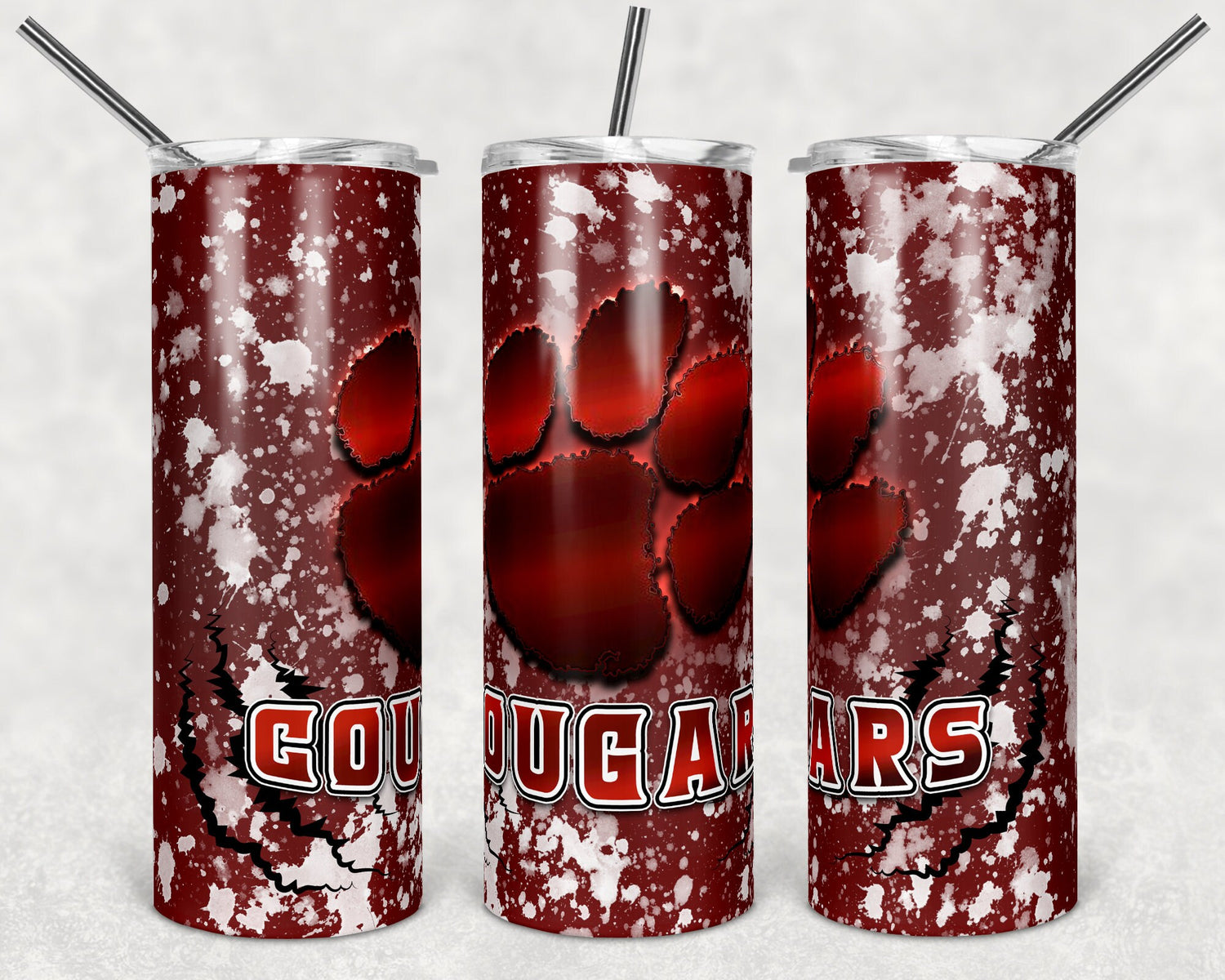 20 oz Skinny Tumbler Sublimation Design Template Cougars Power Wash Add School Logo Straight Warped Design
