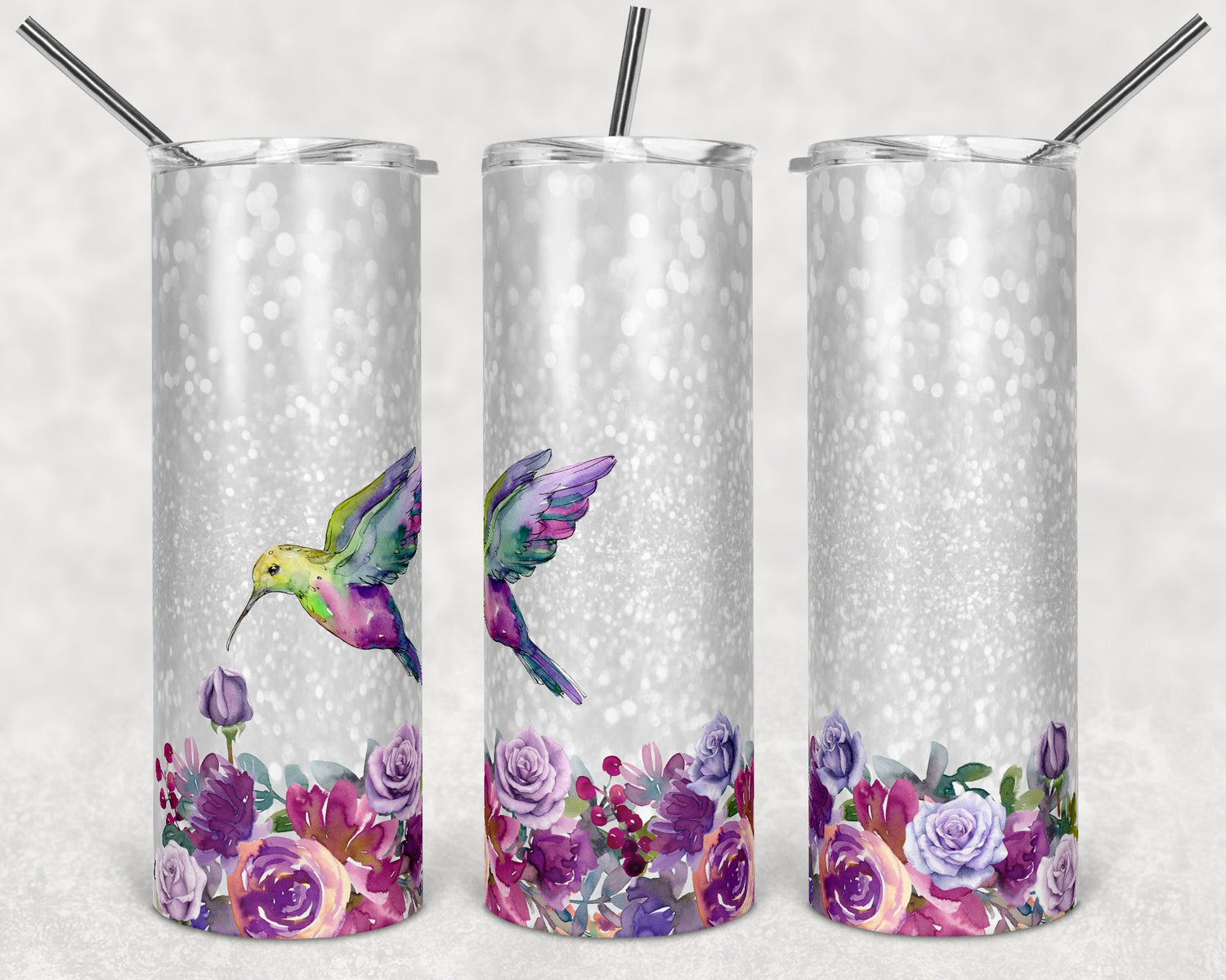 20 oz Skinny Tumbler Sublimation Design Template Faux Glitter Hummingbird add a Quote Straight