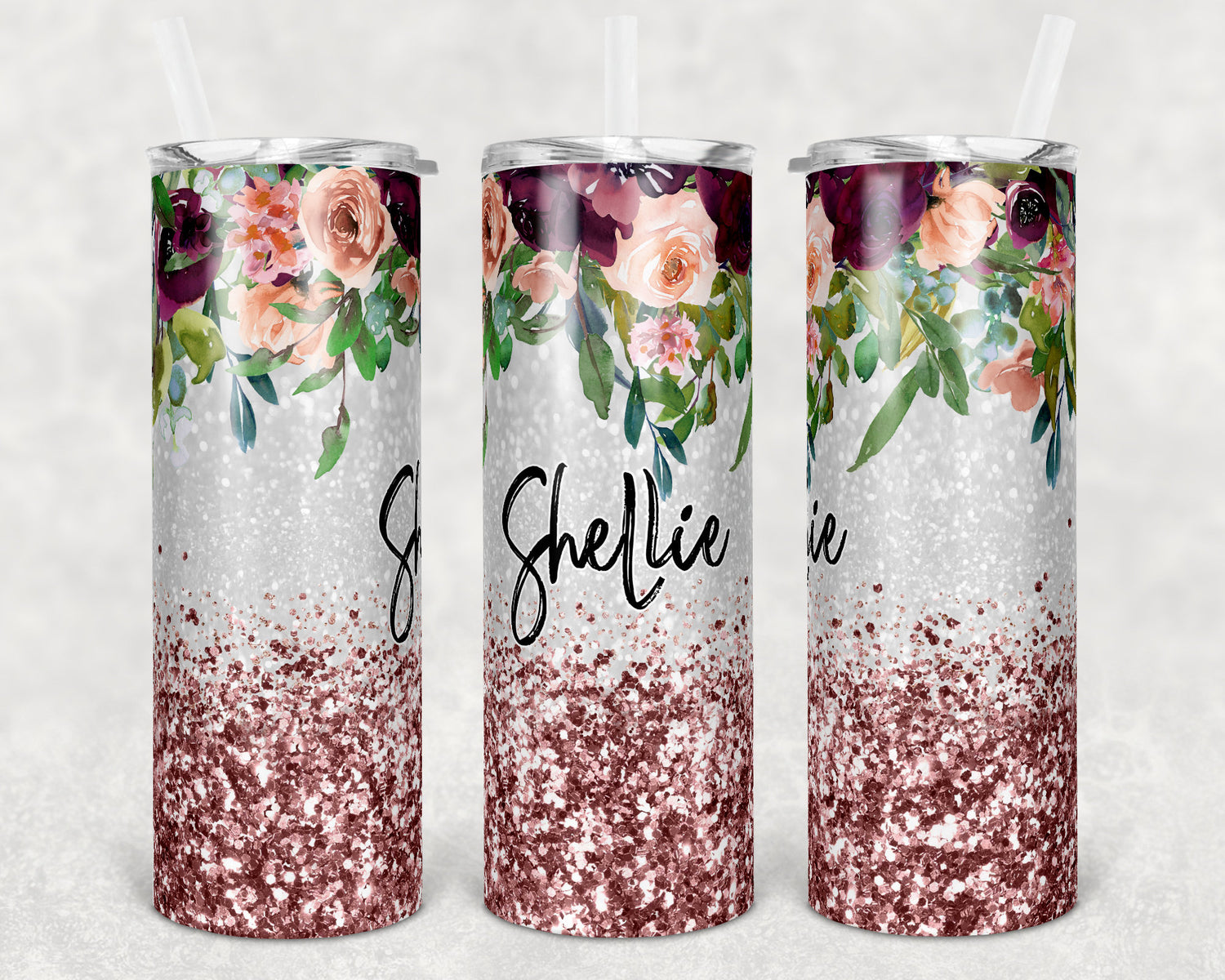 20 oz Skinny Tumbler Sublimation Design Template Floral Rose Gold Glitter Design Inst tumblers