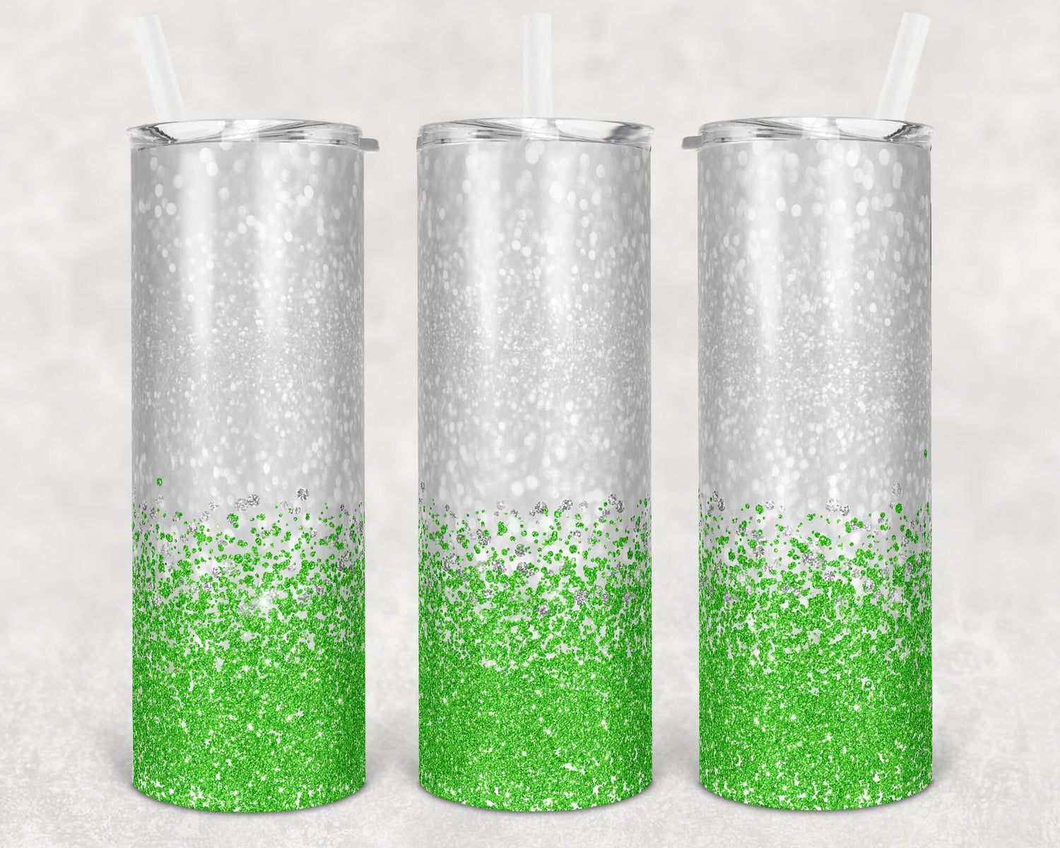 20 oz Skinny Tumbler Sublimation Design Template Glitter Bright Green Lime Background Straight Warped Design