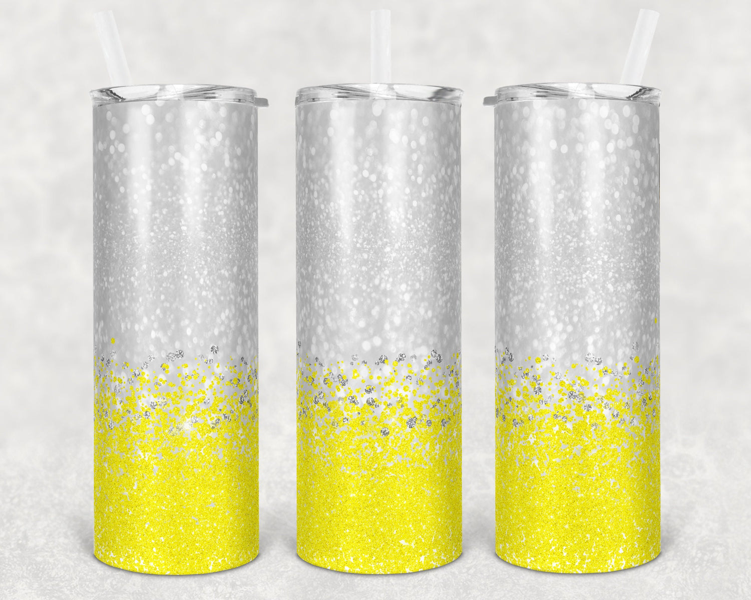 20 oz Skinny Tumbler Sublimation Design Template Glitter Bright Yellow Background Straight Warped Design
