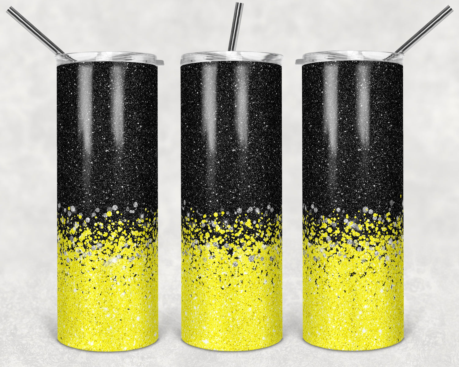 20 oz Skinny Tumbler Sublimation Design Template Glitter Bright Yellow Black Background Straight Warped Design