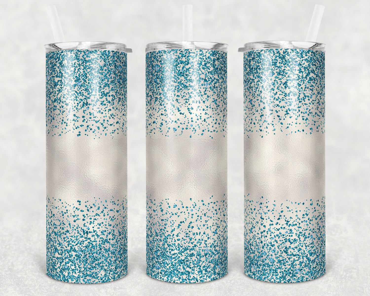 20 oz Skinny Tumbler Sublimation Design Template Glitter Confetti Aqua Teal Straight and Warped Design