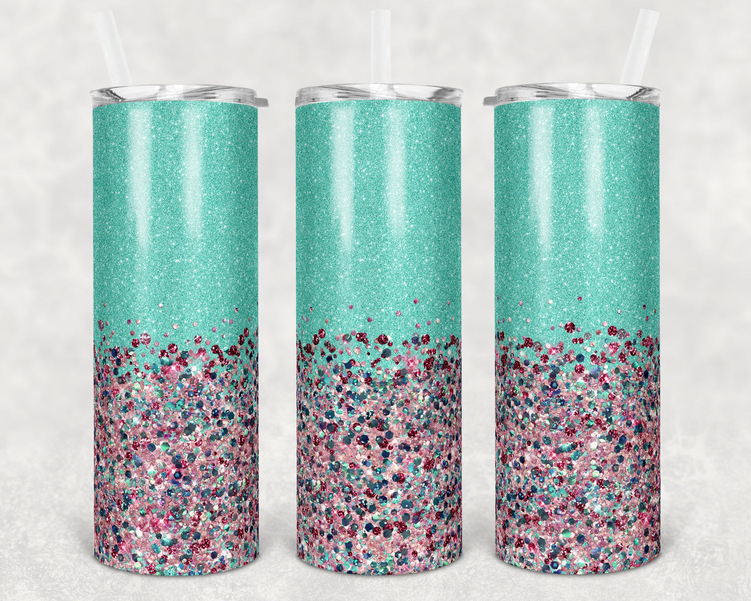 20 oz Skinny Tumbler Sublimation Design Template Glitter Confetti Pink Mint Straight and Warped Design