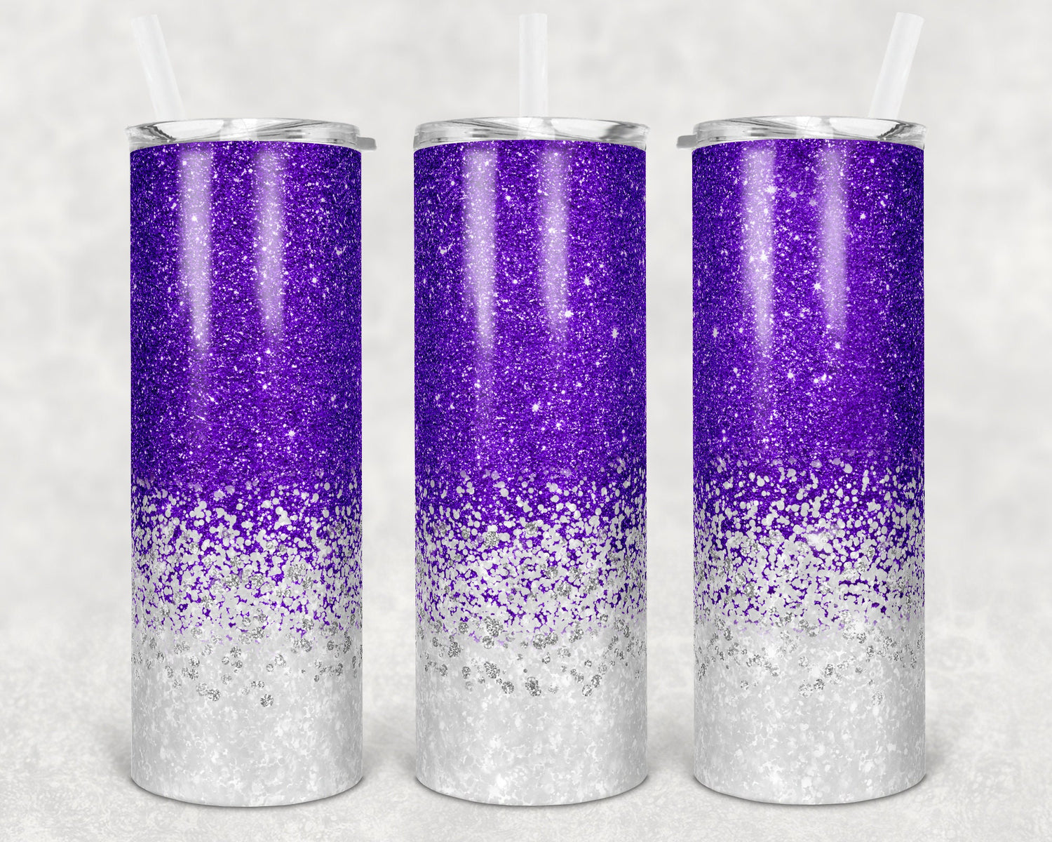 20 oz Skinny Tumbler Sublimation Design Template Glitter Confetti Purple White Straight and Warped Design