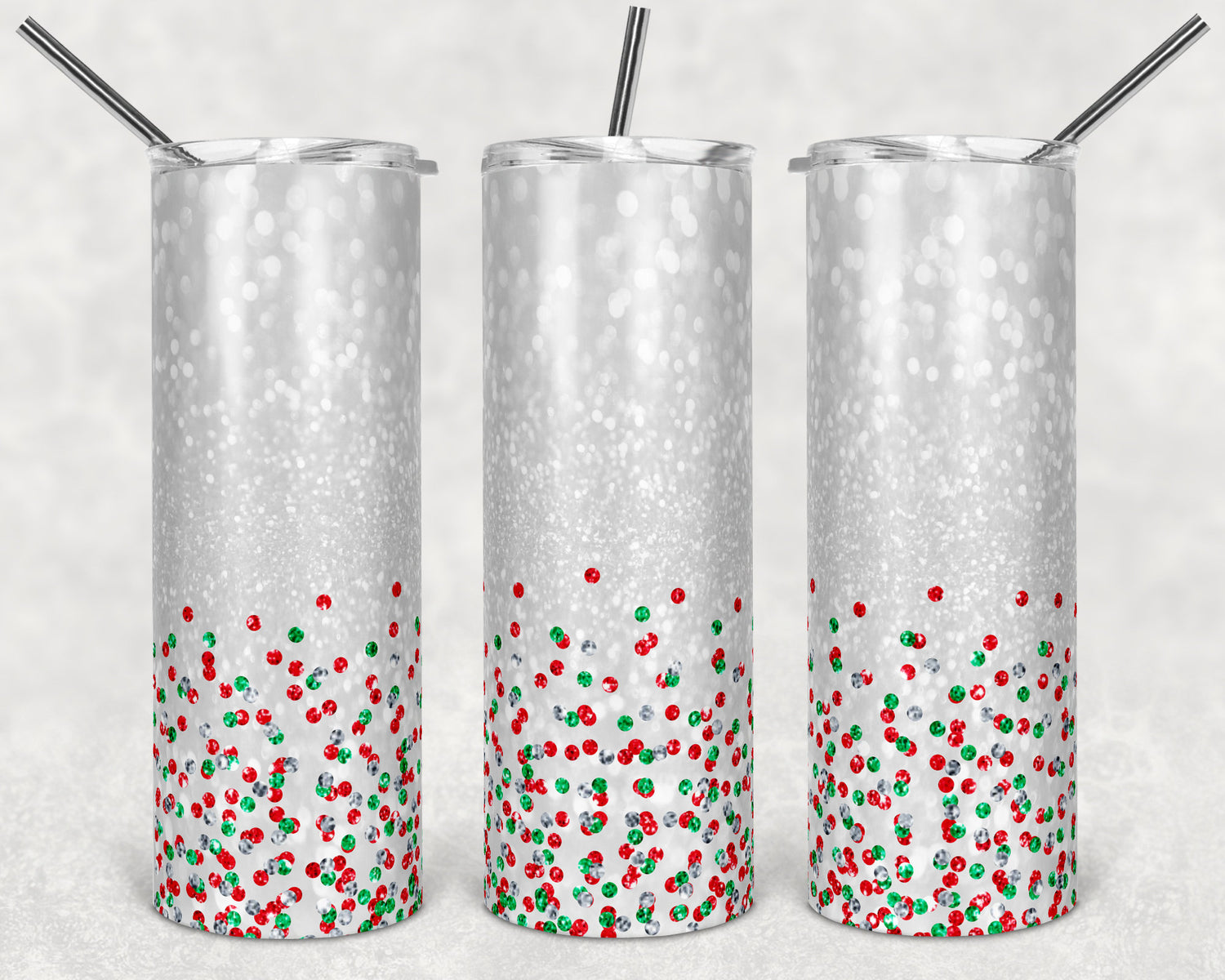 20 oz Skinny Tumbler Sublimation Design Template Glitter Confetti Red Green Christmas Colors Straight Design