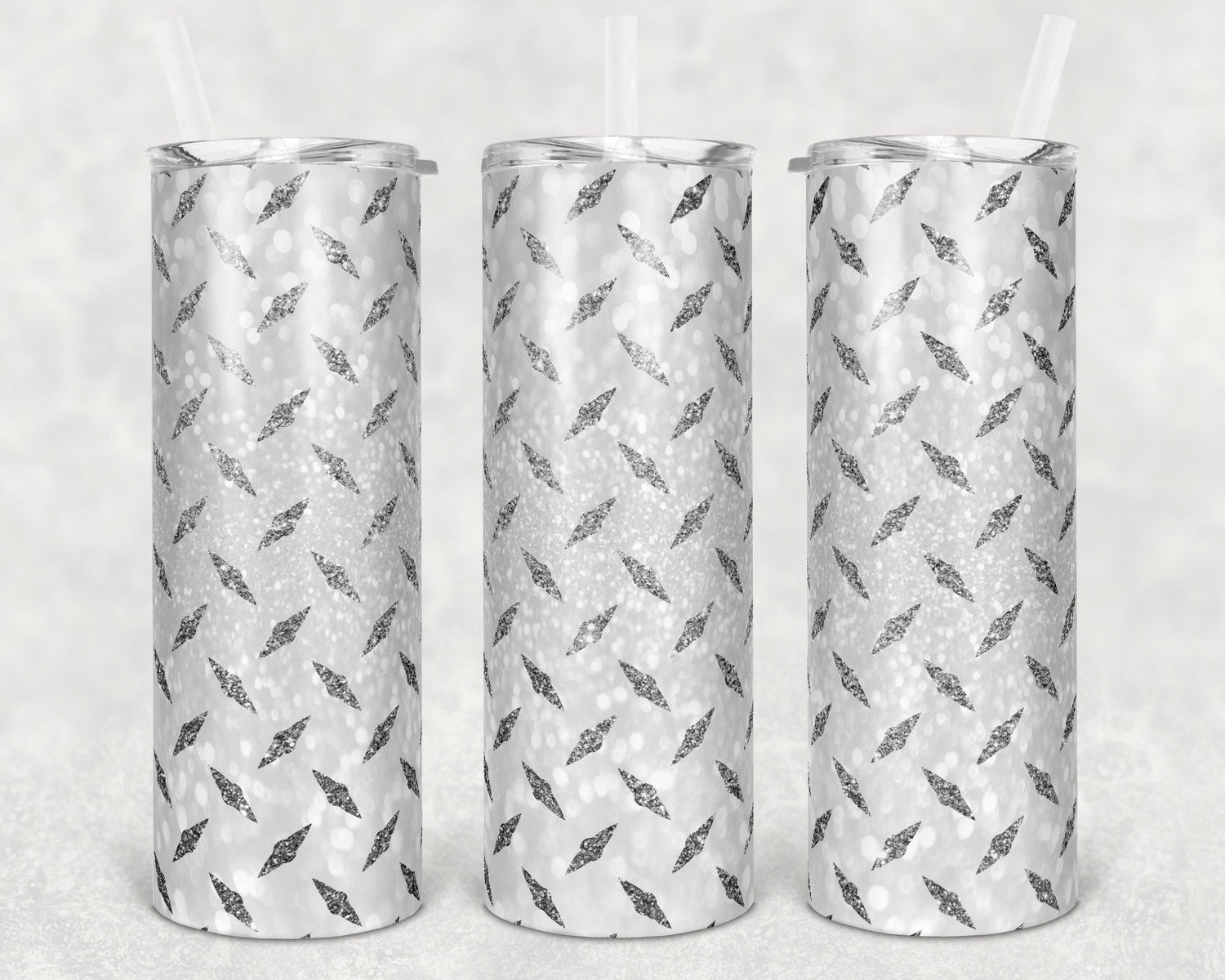 20 oz Skinny Tumbler Sublimation Design Template Glitter Diamond Plate White Silver Straight and Warped Design
