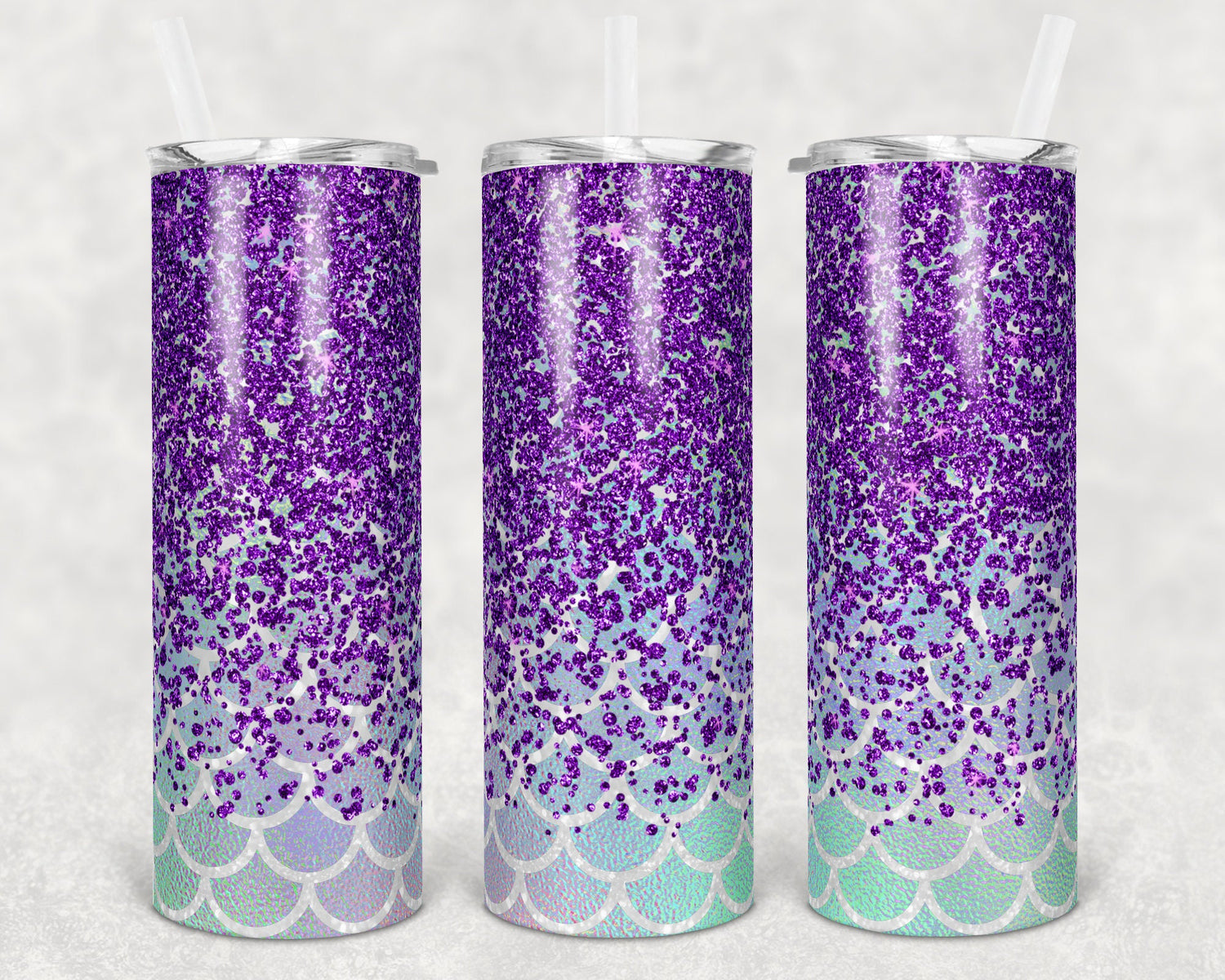20 oz Skinny Tumbler Sublimation Design Template Glitter Foil Mermaid purple