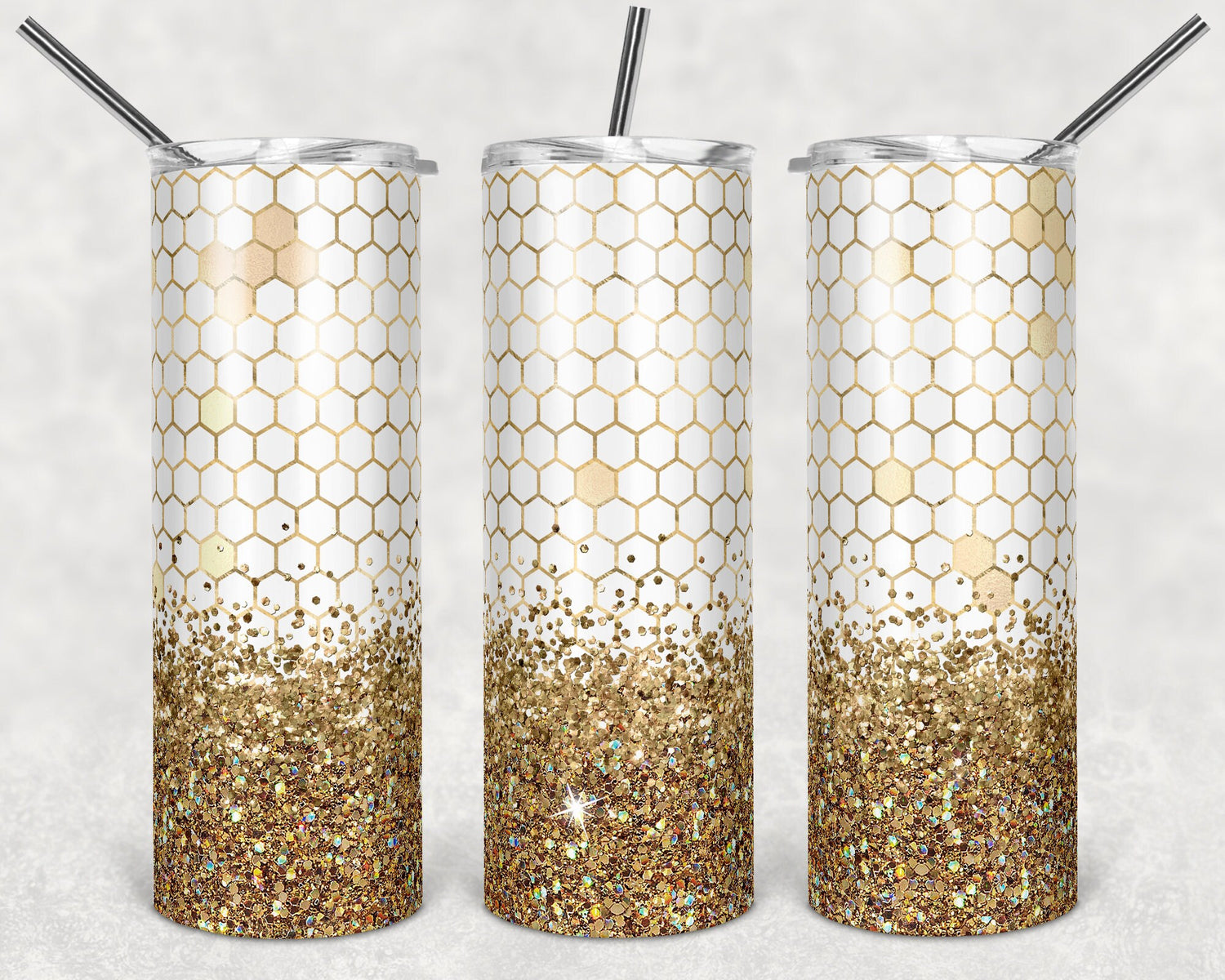 20 oz Skinny Tumbler Sublimation Design Template Glitter Honeycomb bee Design