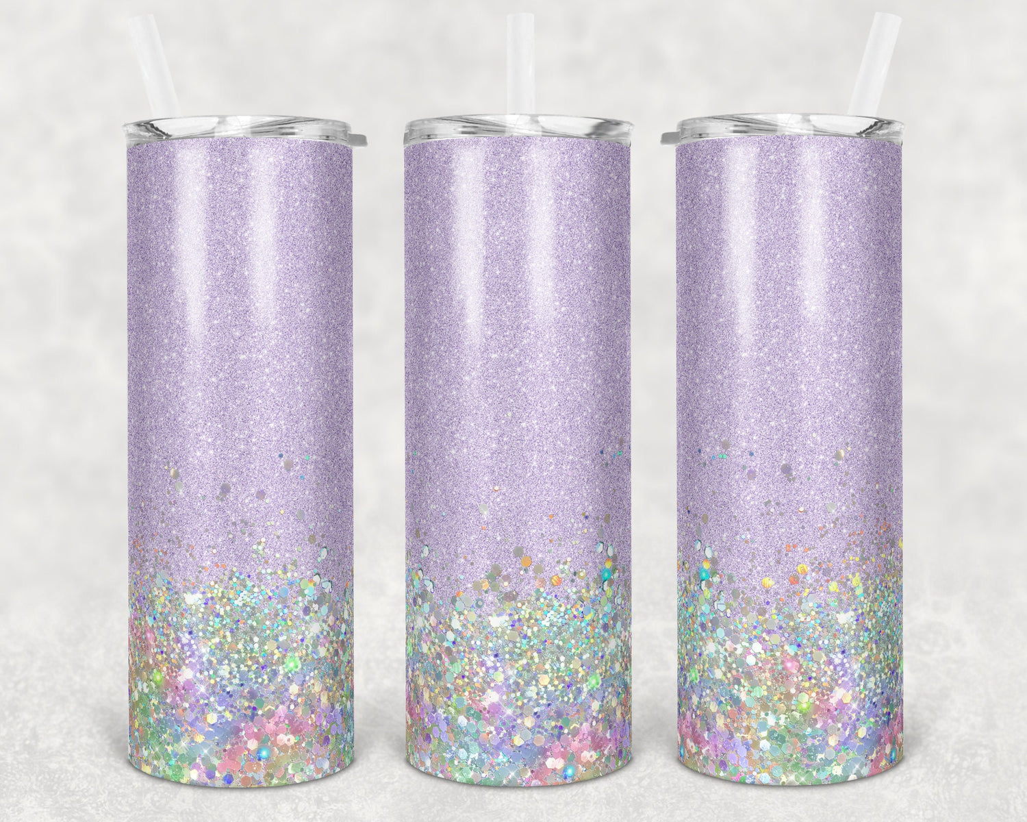 20 oz Skinny Tumbler Sublimation Design Template Glitter Lavender Purple Holographic White Straight and Warped Design