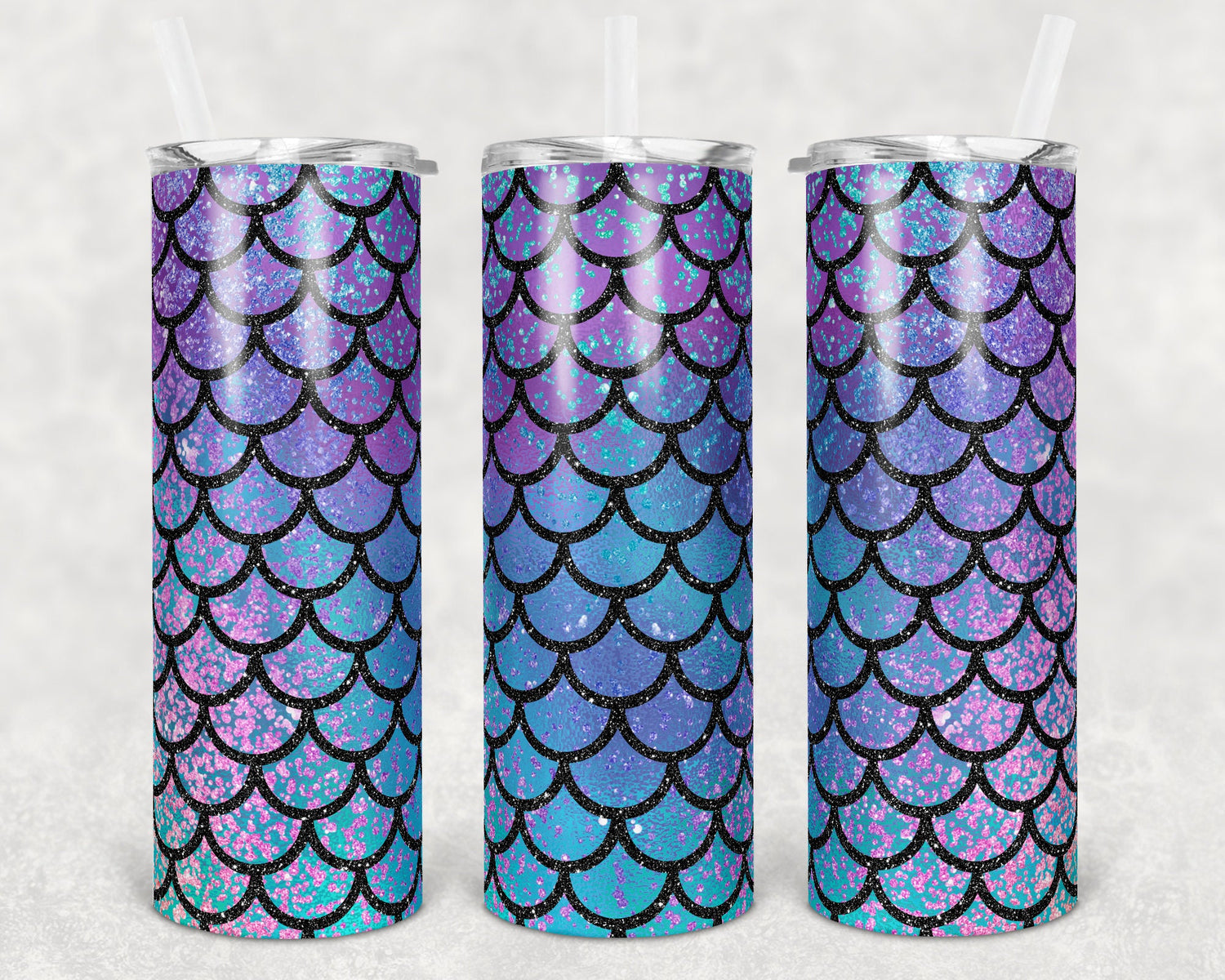 20 oz Skinny Tumbler Sublimation Design Template Glitter Mermaid Scale Irridecent