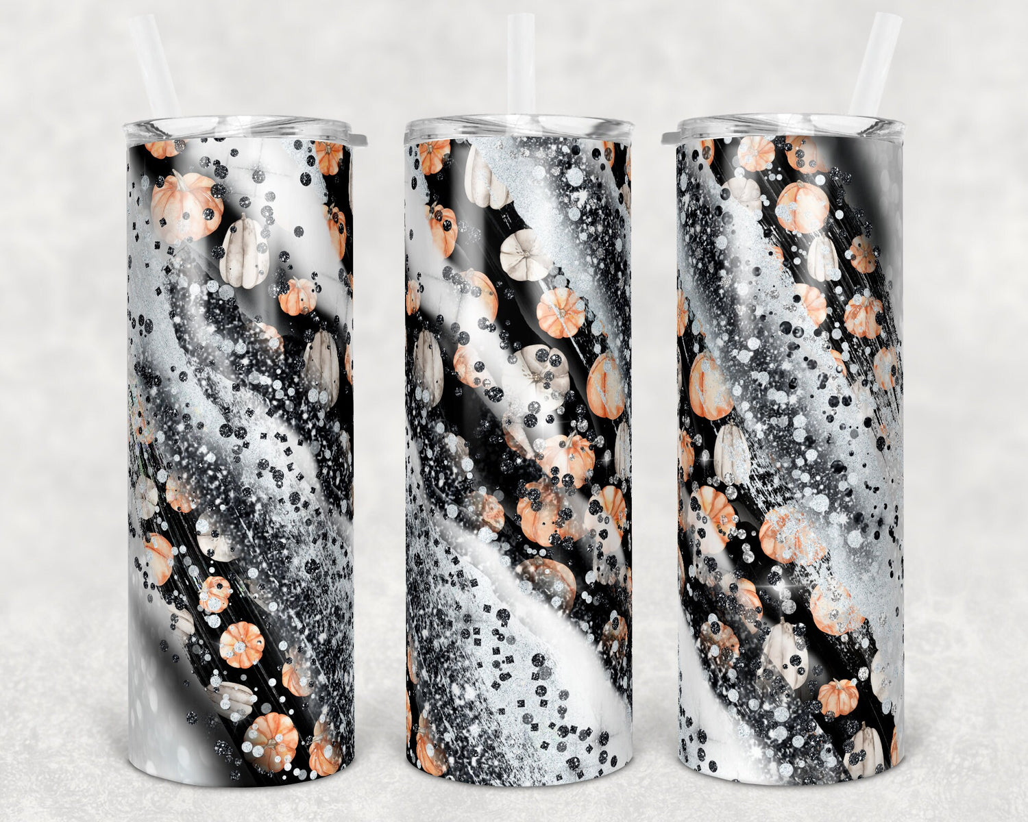 20 oz Skinny Tumbler Sublimation Design Template Glitter Milky way Black Pumpkin Fall Colors Straight Warped Design