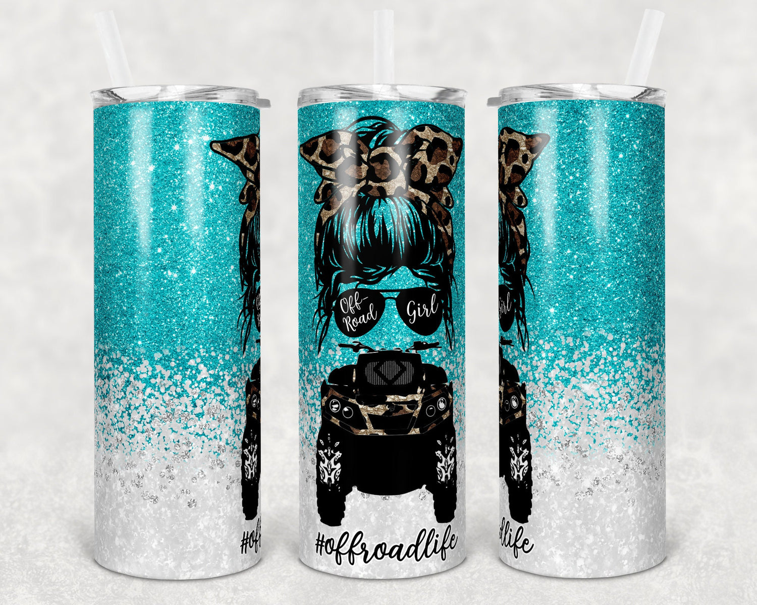 20 oz Skinny Tumbler Sublimation Design Template Glitter Off Road Girl Quad ATV Design off road