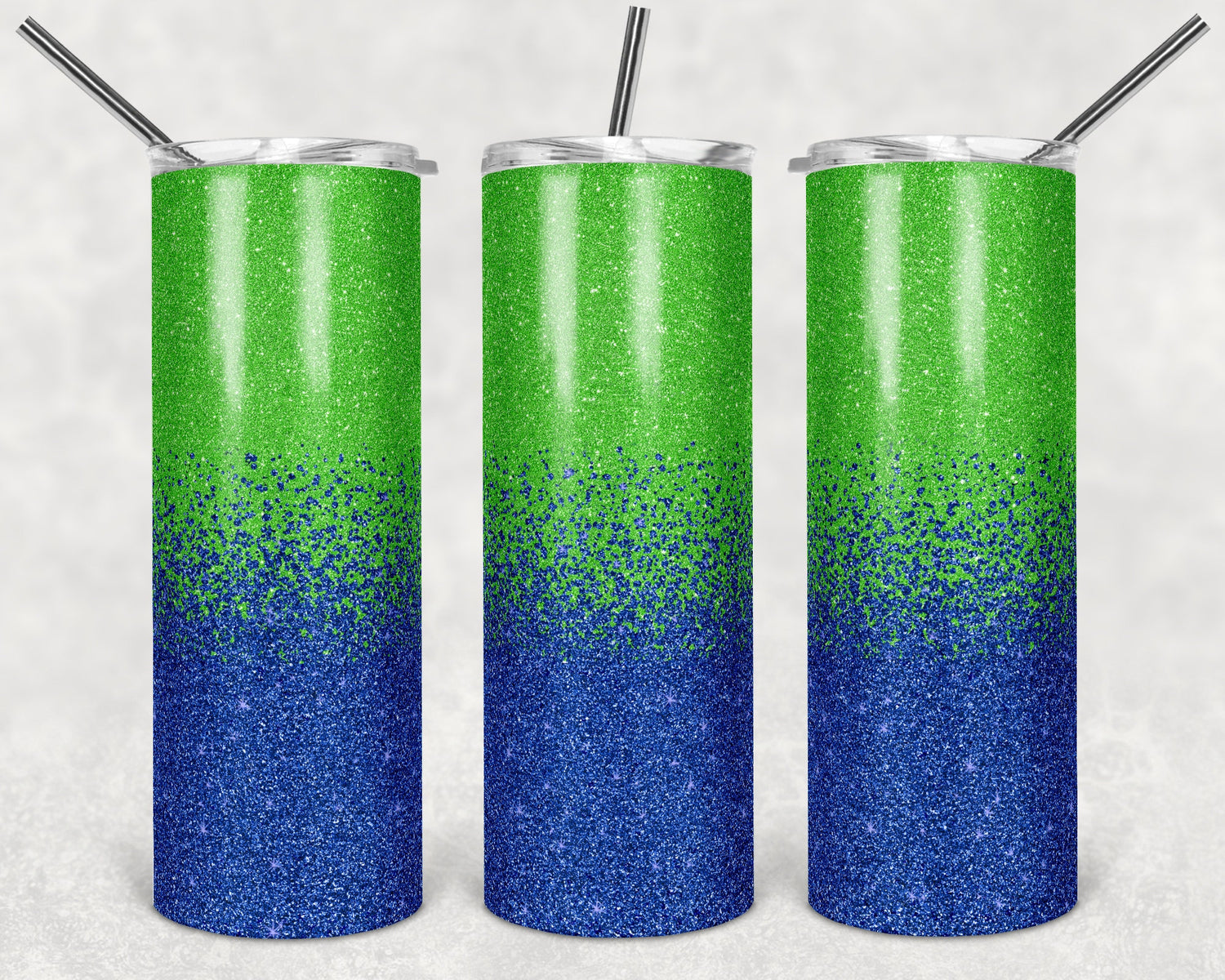 20 oz Skinny Tumbler Sublimation Design Template Glitter Ombre Green Blue Straight Warped Design