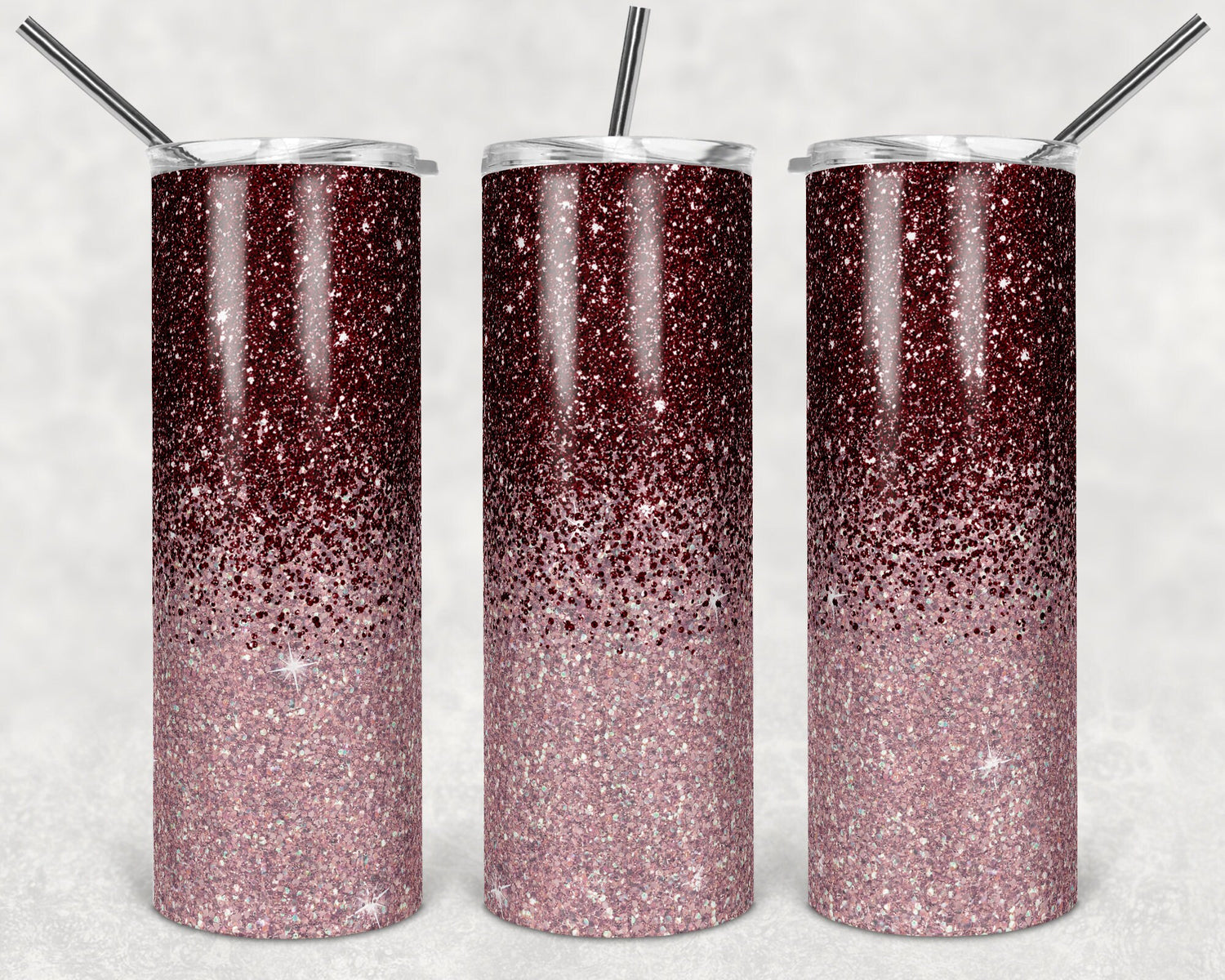 20 oz Skinny Tumbler Sublimation Design Template Glitter Ombre Maroon Rose Gold color Straight Design